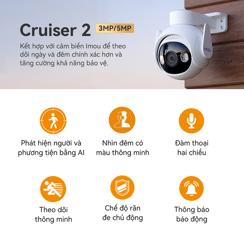 Camera Wifi ngoài trời Imou Cruiser 2 I 3MP/5MP I IPC-GS7EP-5M0WE I Đàm thoại 2 chiều I Phát hiện phương tiện