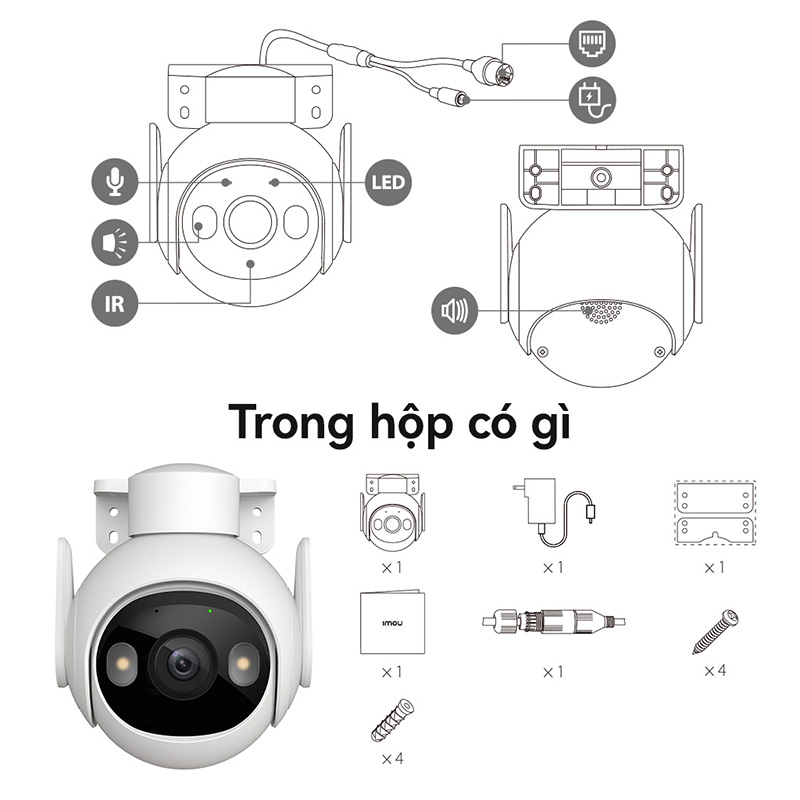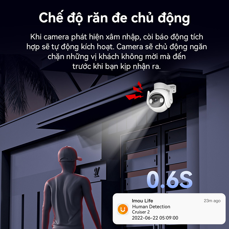 Tính năng thông minh: Công nghệ AI IMOU SENSE, phát hiện con người, phát hiện xe, phát hiện chuyển động, chọn vùng cảnh báo
