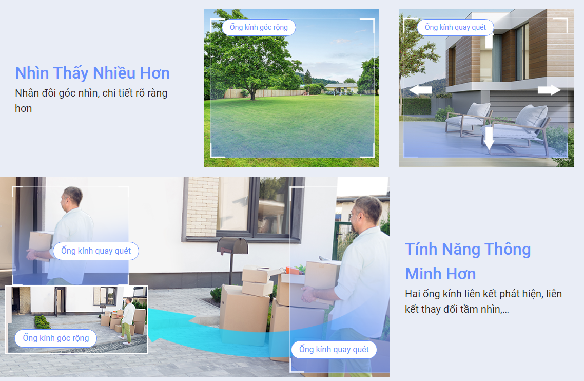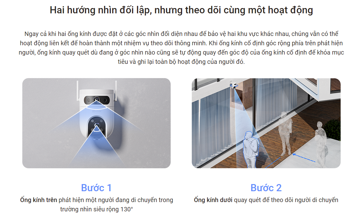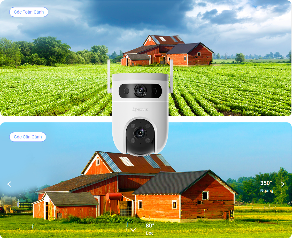 Camera wifi ống kính kép Ezviz H9C H90 chính hãng, màu ban đêm, báo động, đàm thoại
