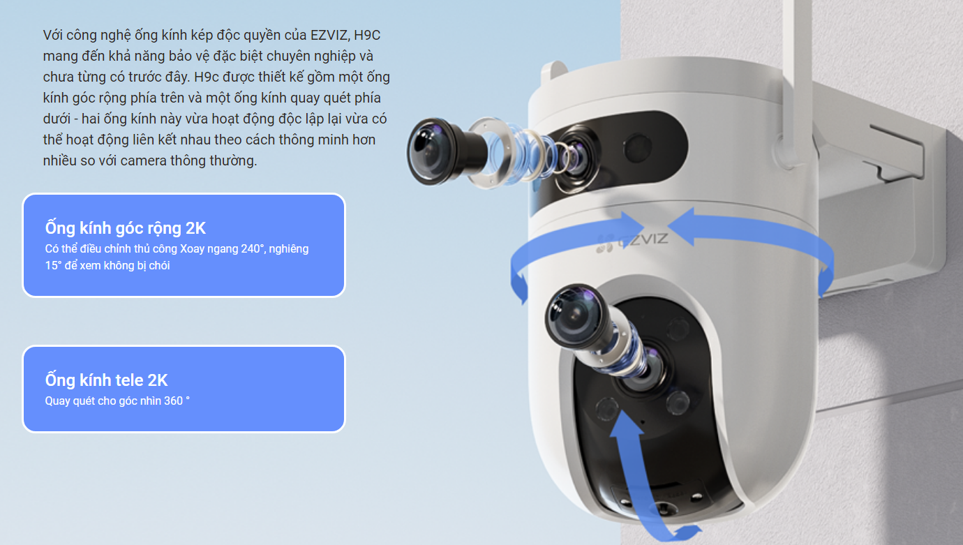 ▶️ Camera wifi ngoài trời EZVIZ H9C 3MP 2K, ống kính kép