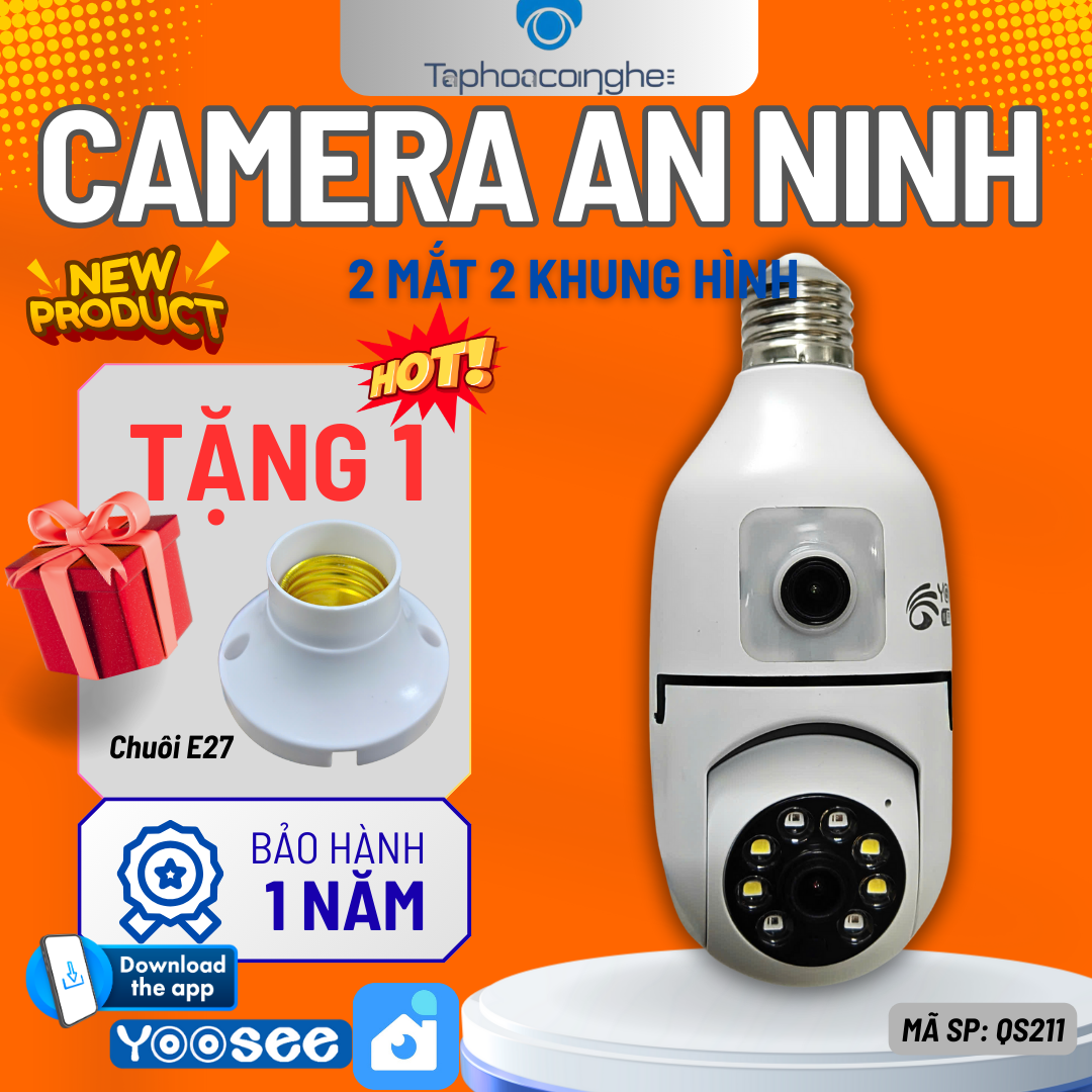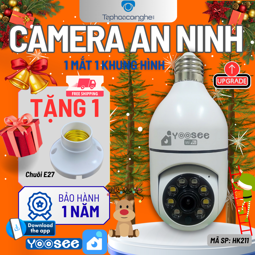 Mẫu Mới 2026 - Camera Yoosee Chui Bóng Đèn HK211 - 1 Mắt 10.0Mpx FullHD , thoại 2 chiều, xoay 360 độ, Máy Ảnh