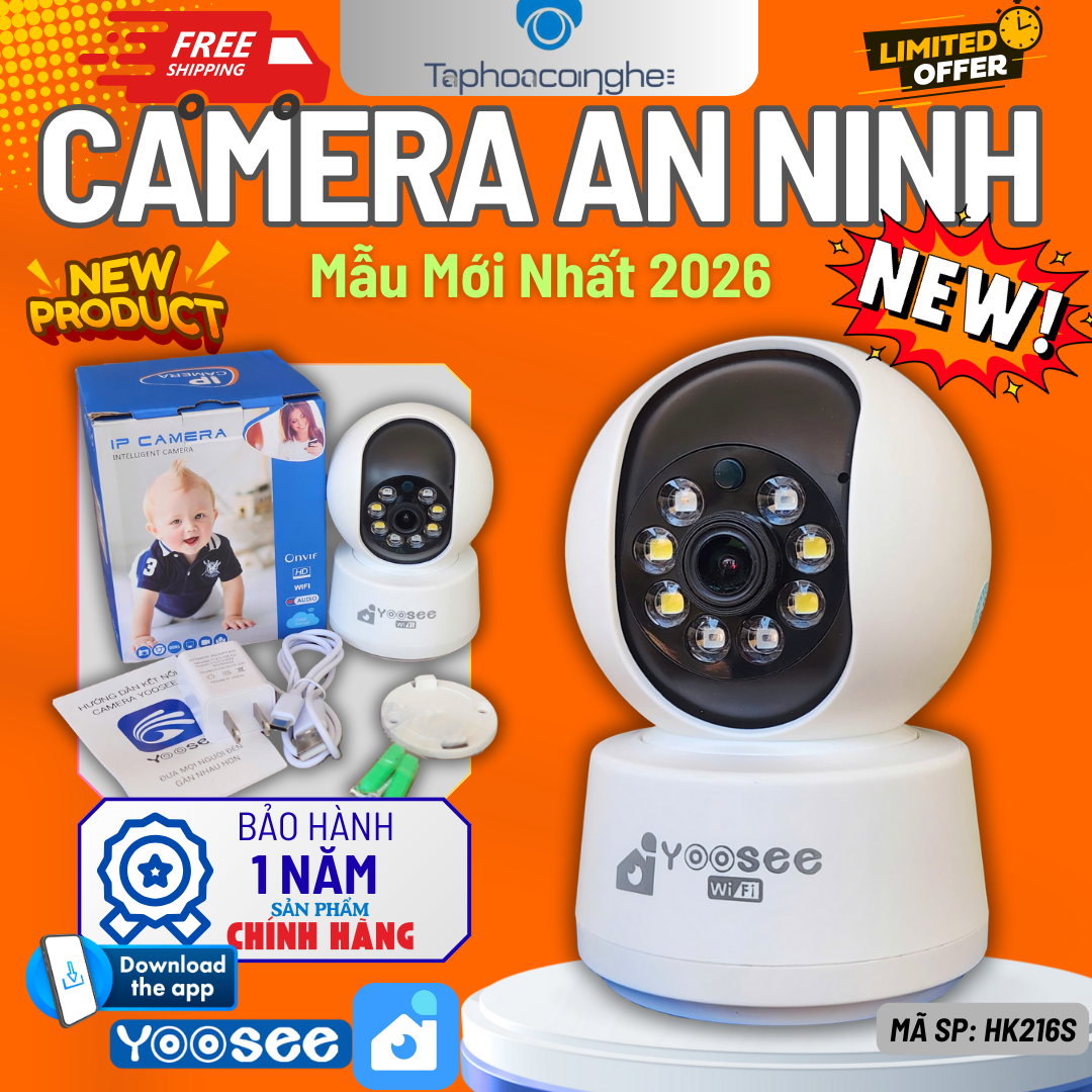 Yoosee HK211 là mẫu camera quay–quét 360° cho gia đình/cửa hàng: lắp trong 3 phút, xem từ xa trên điện thoại, cảnh báo khi có chuyển động. Hình ảnh sắc nét (Full HD), mic/loa lớn đàm thoại 2 chiều rõ như gọi điện. Hỗ trợ thẻ nhớ 16–128GB ghi vòng lặp 24/7, xem lại theo mốc thời gian/sự kiện ngay trên app Yoosee giao diện tiếng Việt.