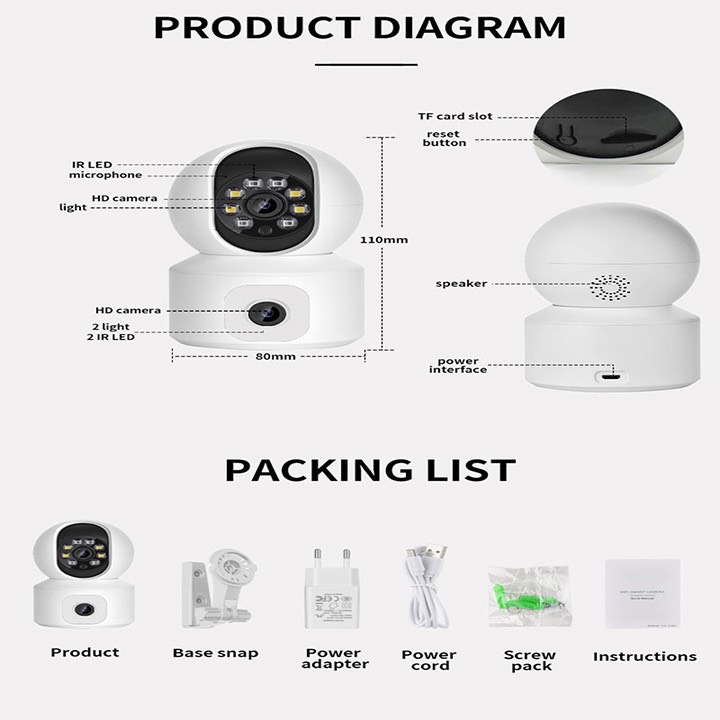 Camera có thể quay 360 độ ngang, 120 độ dọc giúp quan sát một cách toàn diện không gian nhà bạn