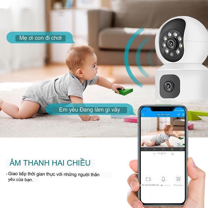 Camera được tích hợp mic và loa trên. Vì việc việc tương tác giao tiếp với nhau như bộ đàm thong qua camera rất tiện lợi dù ở bất kỳ nơi đâu.