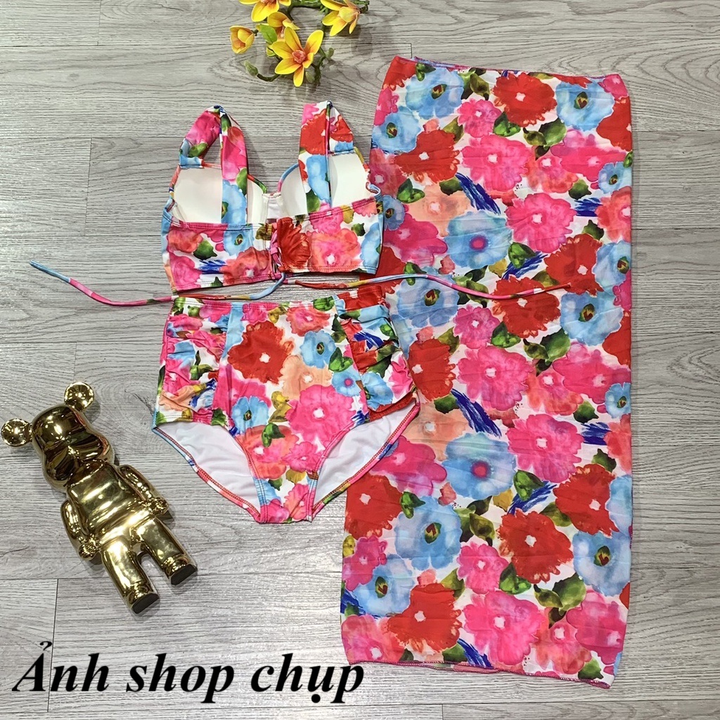 Bikini 3 mảnh kèm khăn No93 áo tắm nữ bikini cạp cao che bụng bikini nâng ngực đi biển bikini 2 mảnh có mút ngực