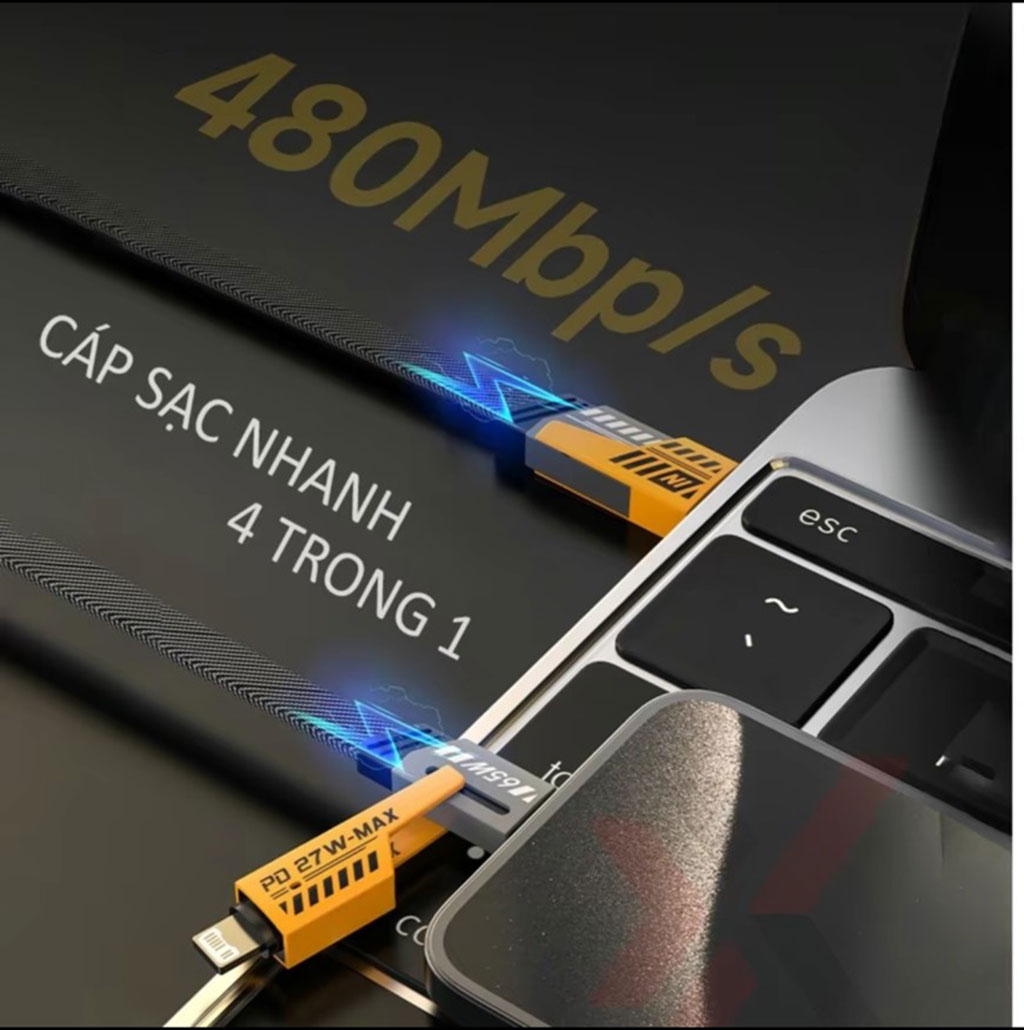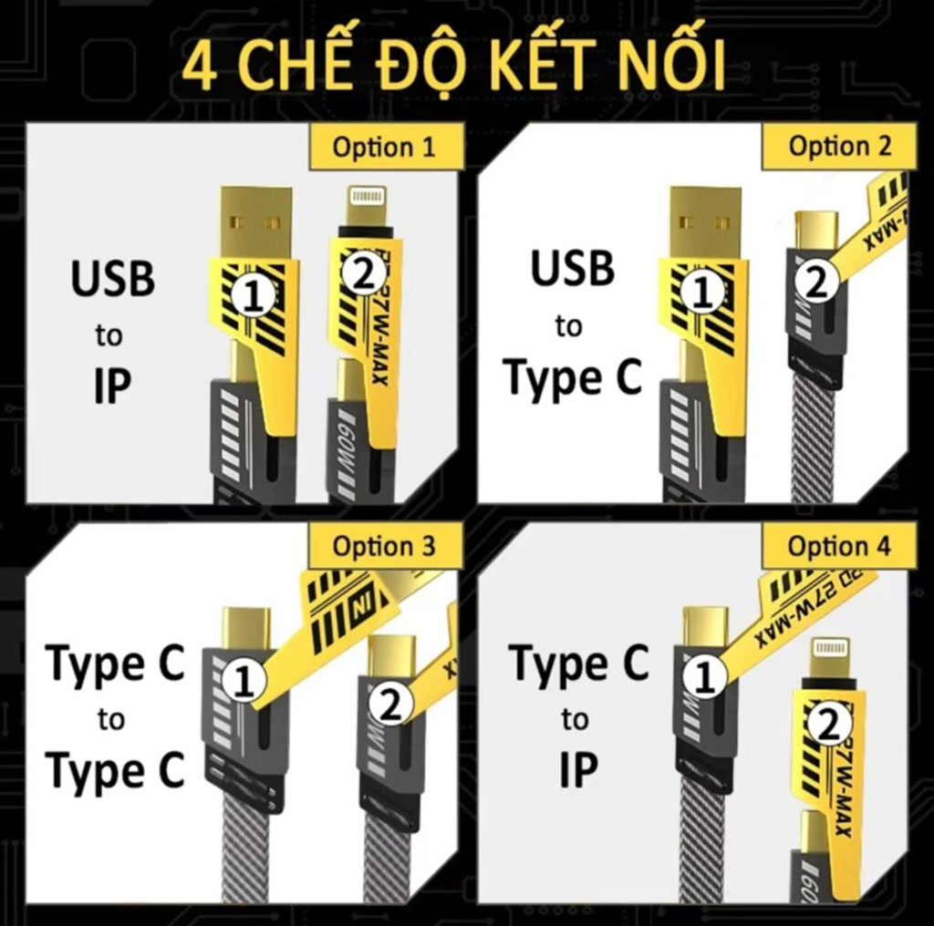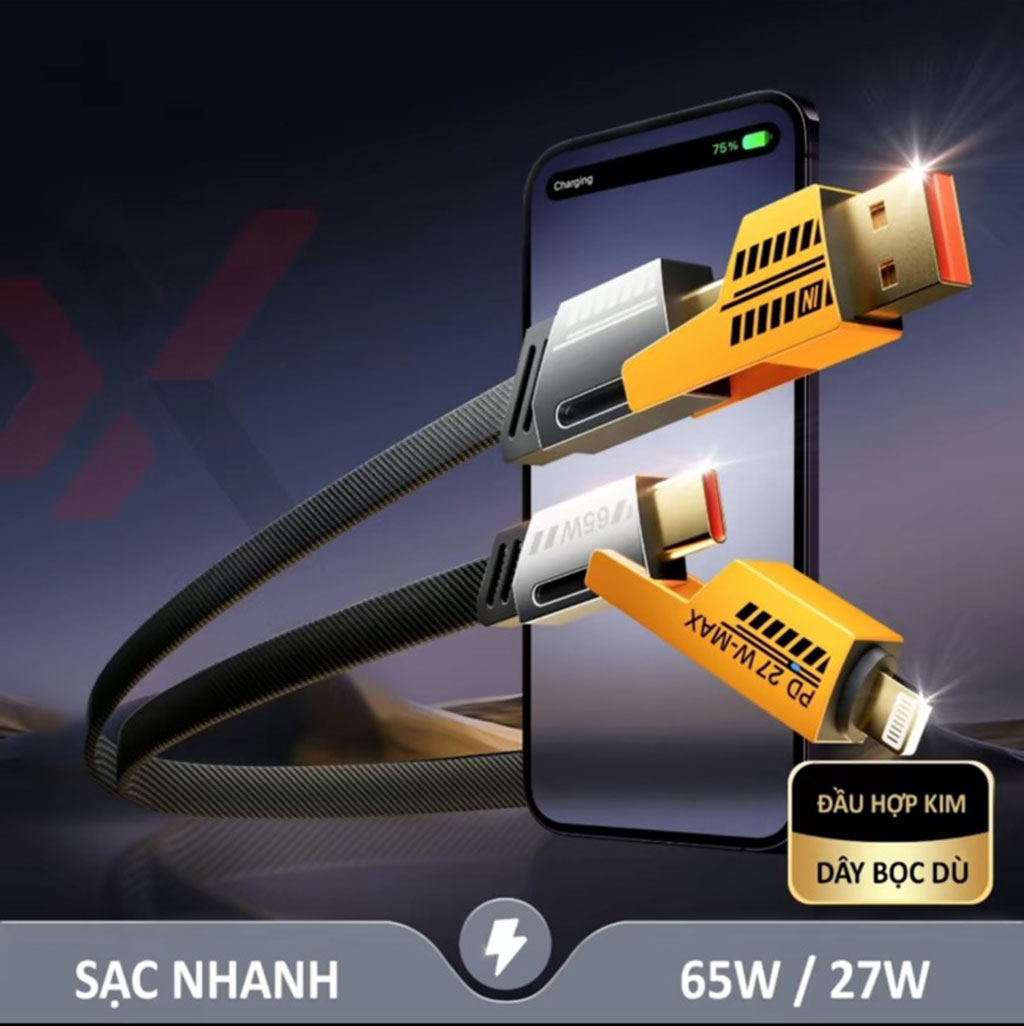 Cáp sạc nhanh đa năng 4 in 1, sạc siêu nhanh 65W cho Andoroid và PD 27W cho iP - AUDIO365