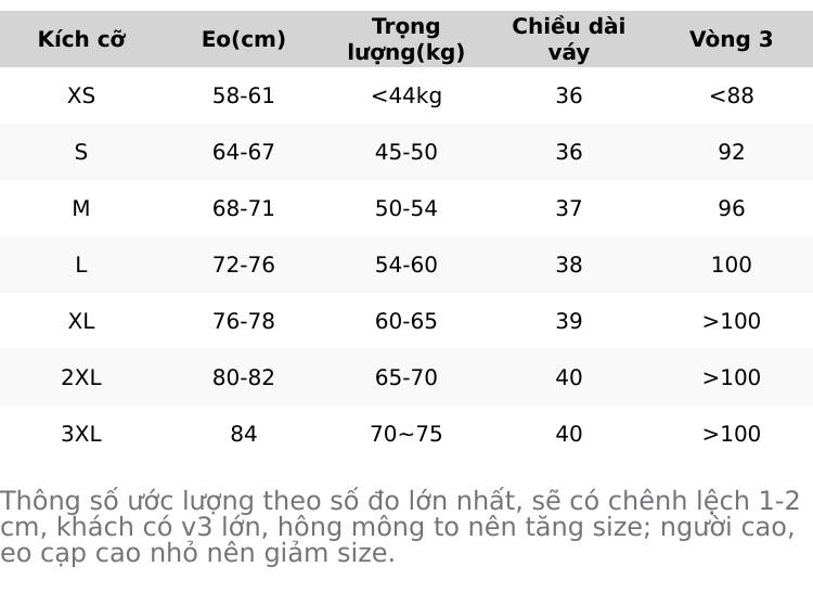 Nếu chiều cao trên 1M6 mà thông số khác đúng như trên thì nên cân nhắc lùi 1 size. Cạp eo cao khách đo trên rốn khoảng 3-5cm. Bụng, eo dưới bình thường là phù hợp số đo trên. Thực tế thông số ước lượng du di 1-2cm tùy cơ địa.