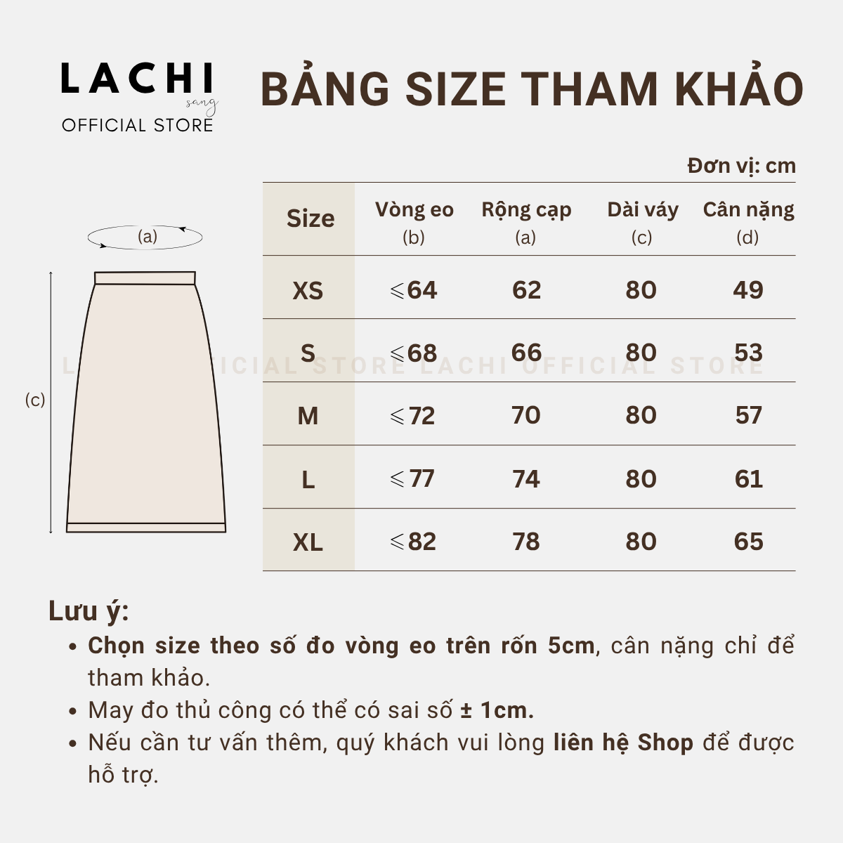 Nàng bigsize cũng không còn phải lăn tăn vì chân váy kaki dáng dài công sở nhà LACHI có đầy đủ size từ XS đến XL, cực dễ phối đồ và mặc lên “có dáng ngay”!