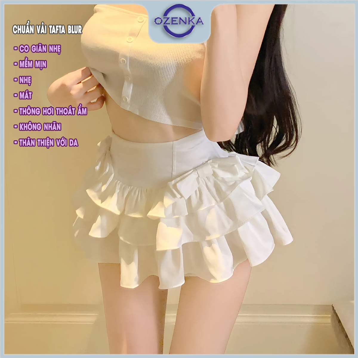 Thông tin chi tiết Chân váy ngắn 3 tầng cạp chun có bảo hộ xinh sang chảnh ozenka :