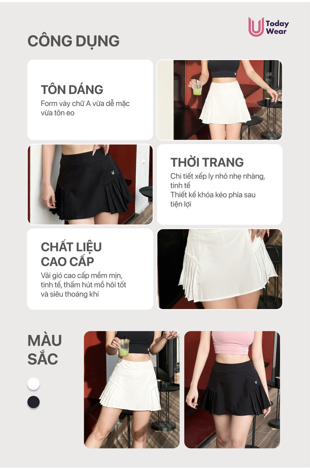 Chân váy xếp ly Elly Skirt Today U Wear 2 lớp dáng chữ A thể thao (cầu lông, tennis, chạy bộ, pickleball...)