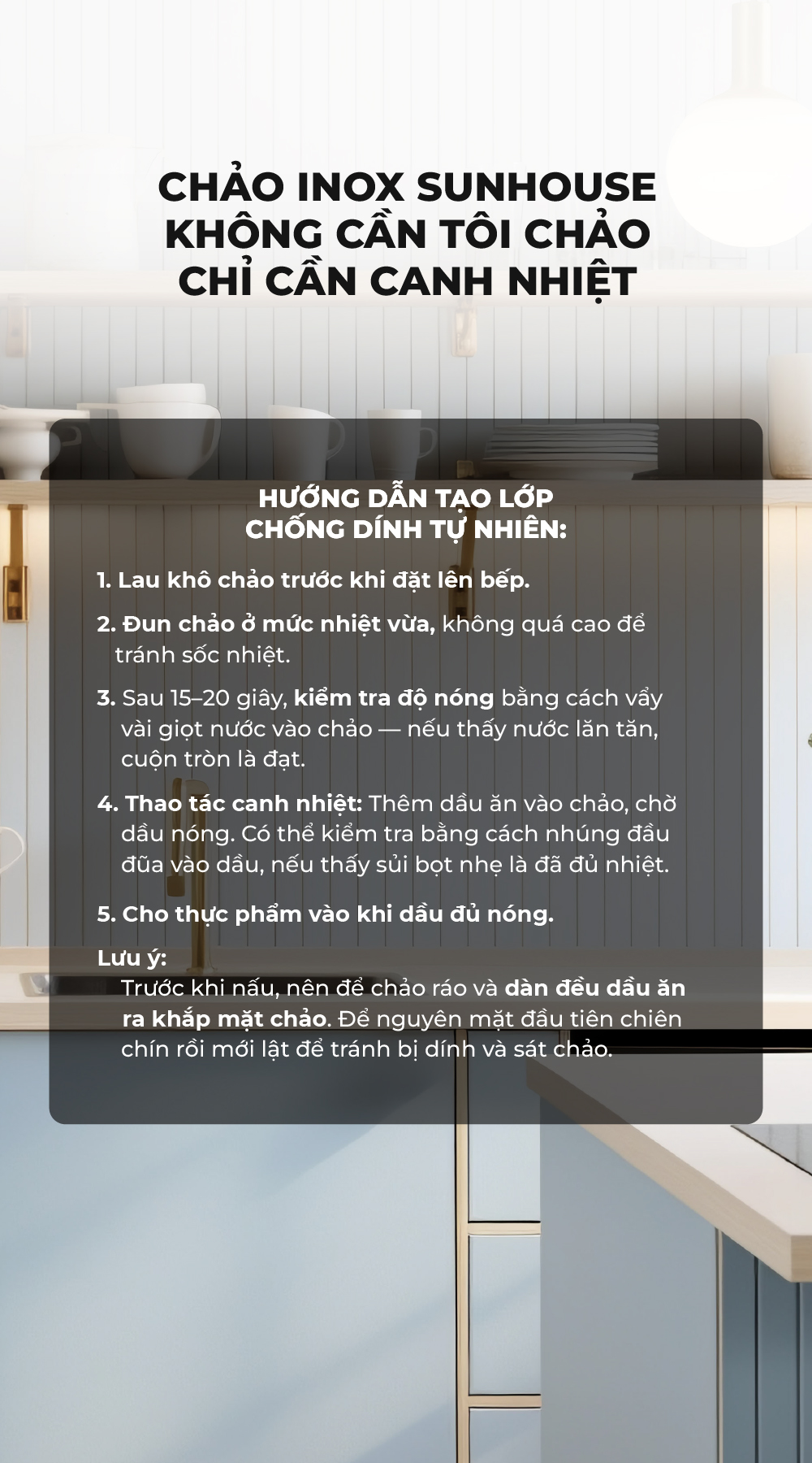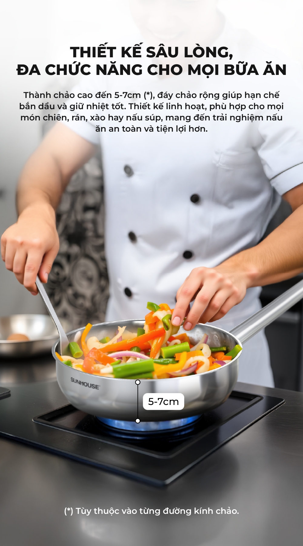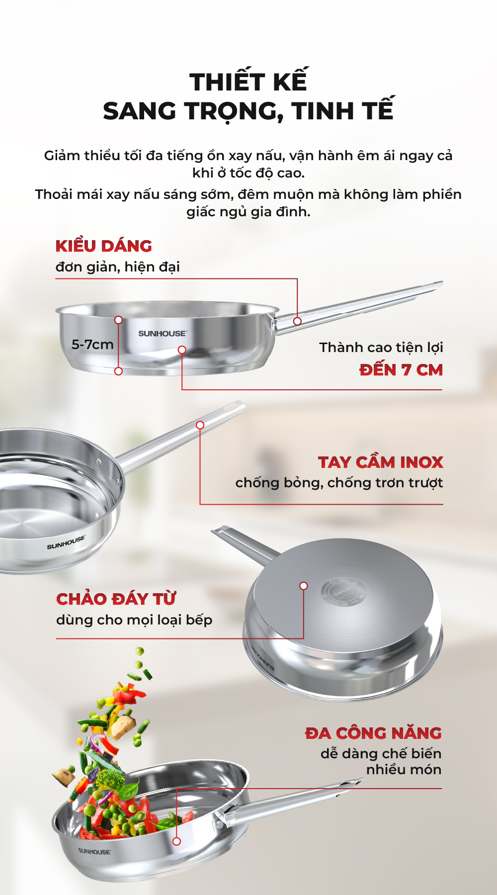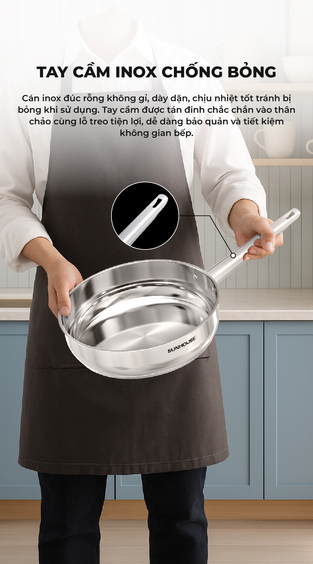 Chảo Inox 304 cao cấp Sunhouse Healthy IN16-20-24-26-28M9 - Phù hợp mọi loại bếp - Tay cầm Inox không gỉ