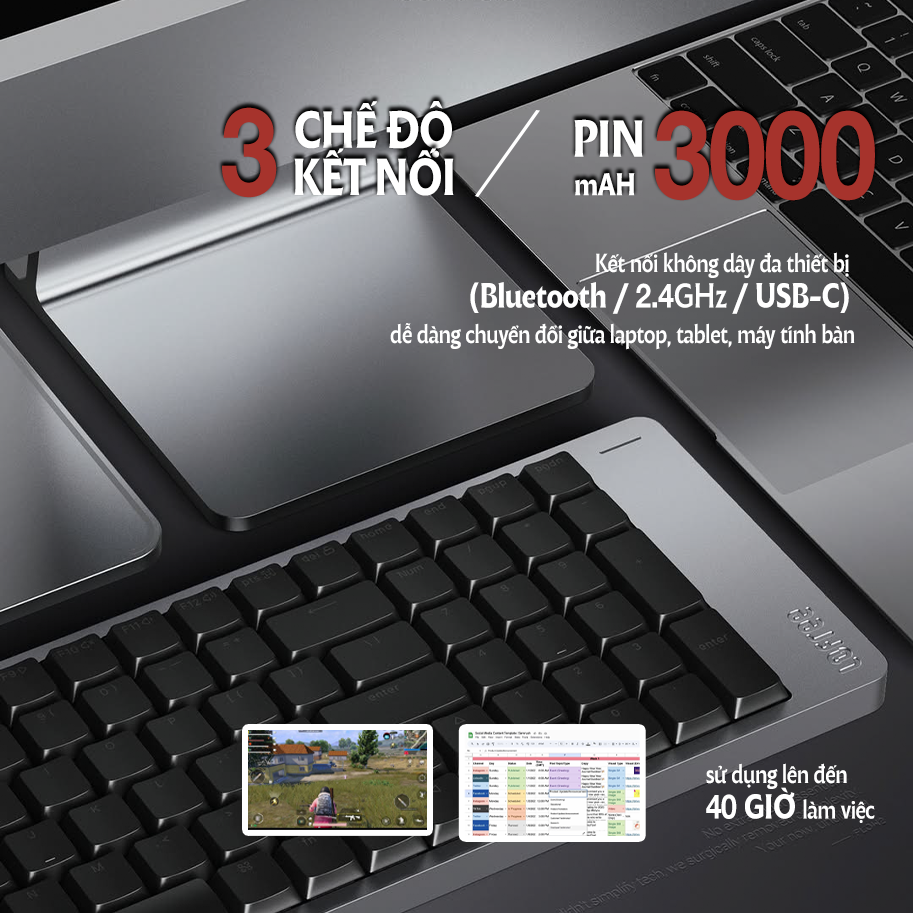 Kết nối 3 mode: 2.4GHz, Bluetooth 5.3 và USB-C