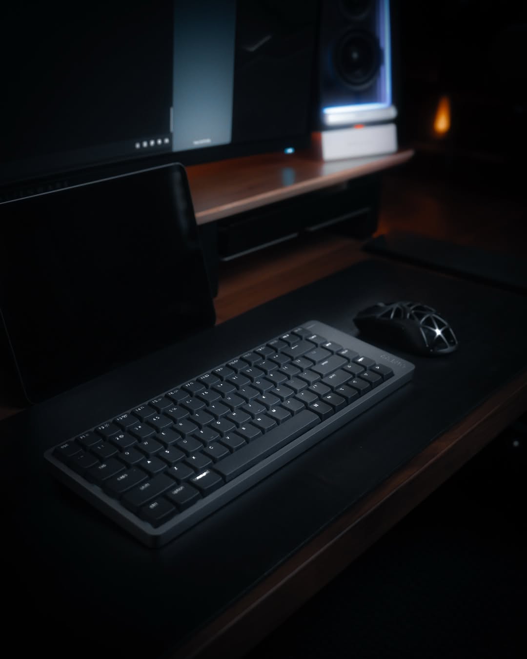 → Khi làm việc buổi tối, kết hợp keycap PBT xuyên led, ánh sáng trắng giúp nhìn rõ từng keycap low-profile.