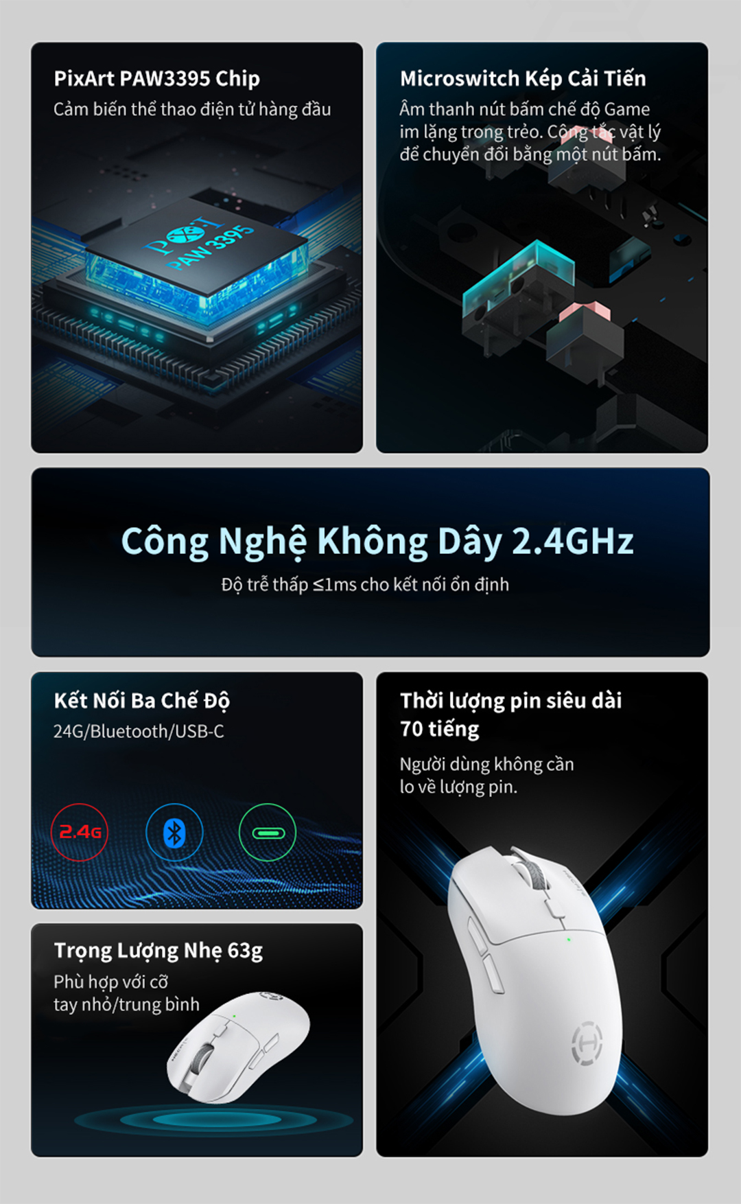 Chuột Gaming Không Dây EDIFIER G3M PRO | Thời Gian Sử Dụng Đến 70H | Độ Trễ Thấp 1ms | 3 Chế Độ | Bảo Hành 15 Tháng