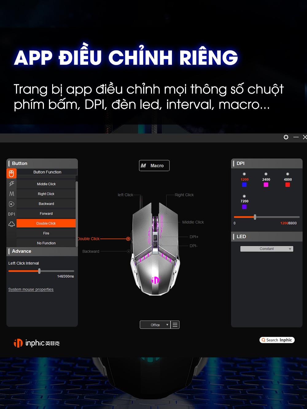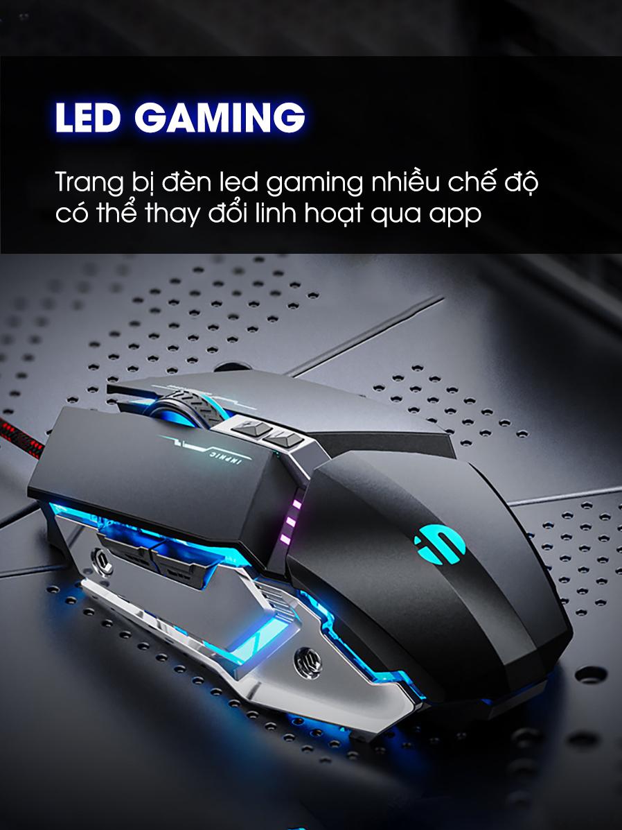 Chuột gaming máy tính SIDOTECH INPHIC W2 có dây silent 7 nút bấm chống ồn có app led macro cho game thủ
