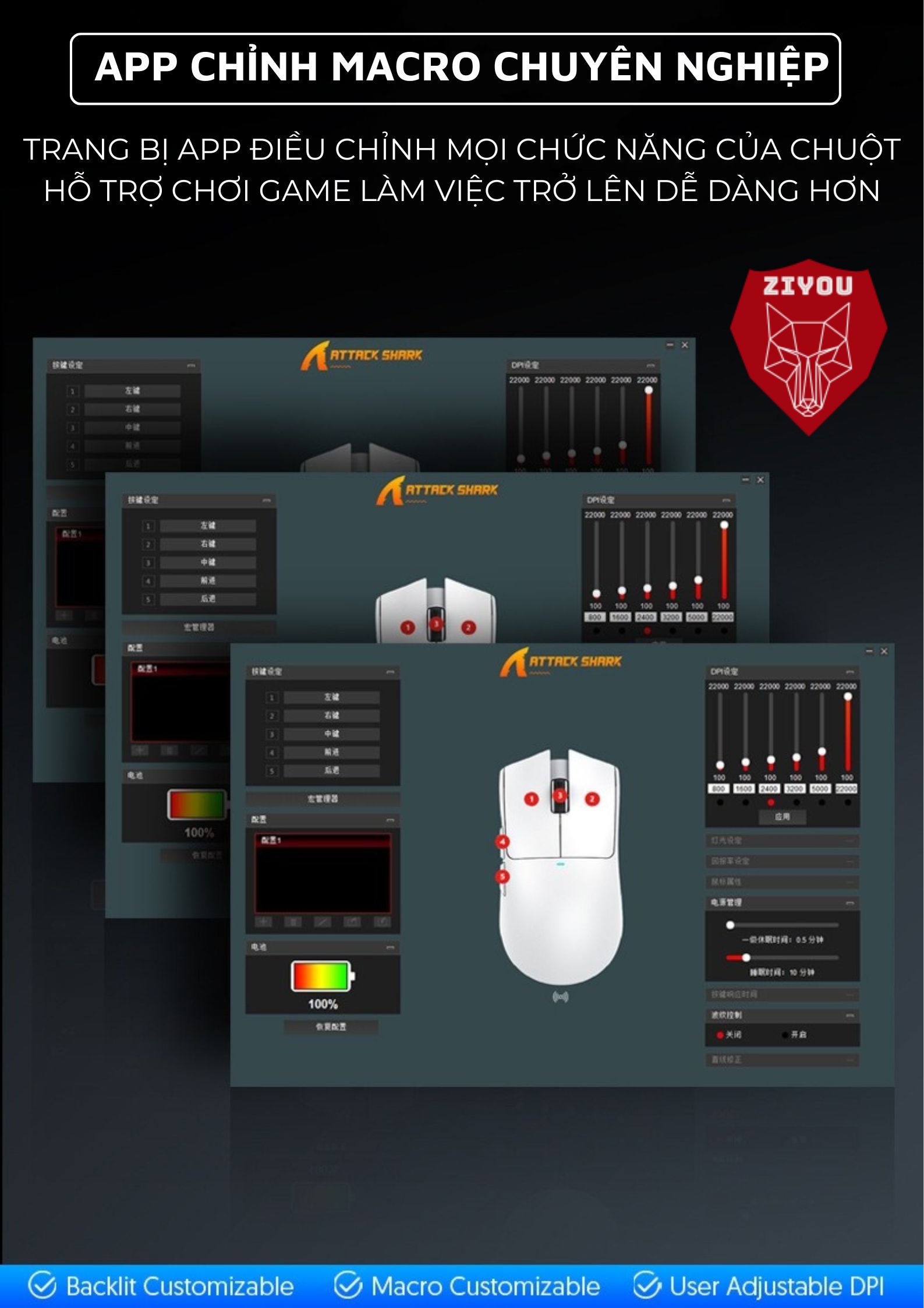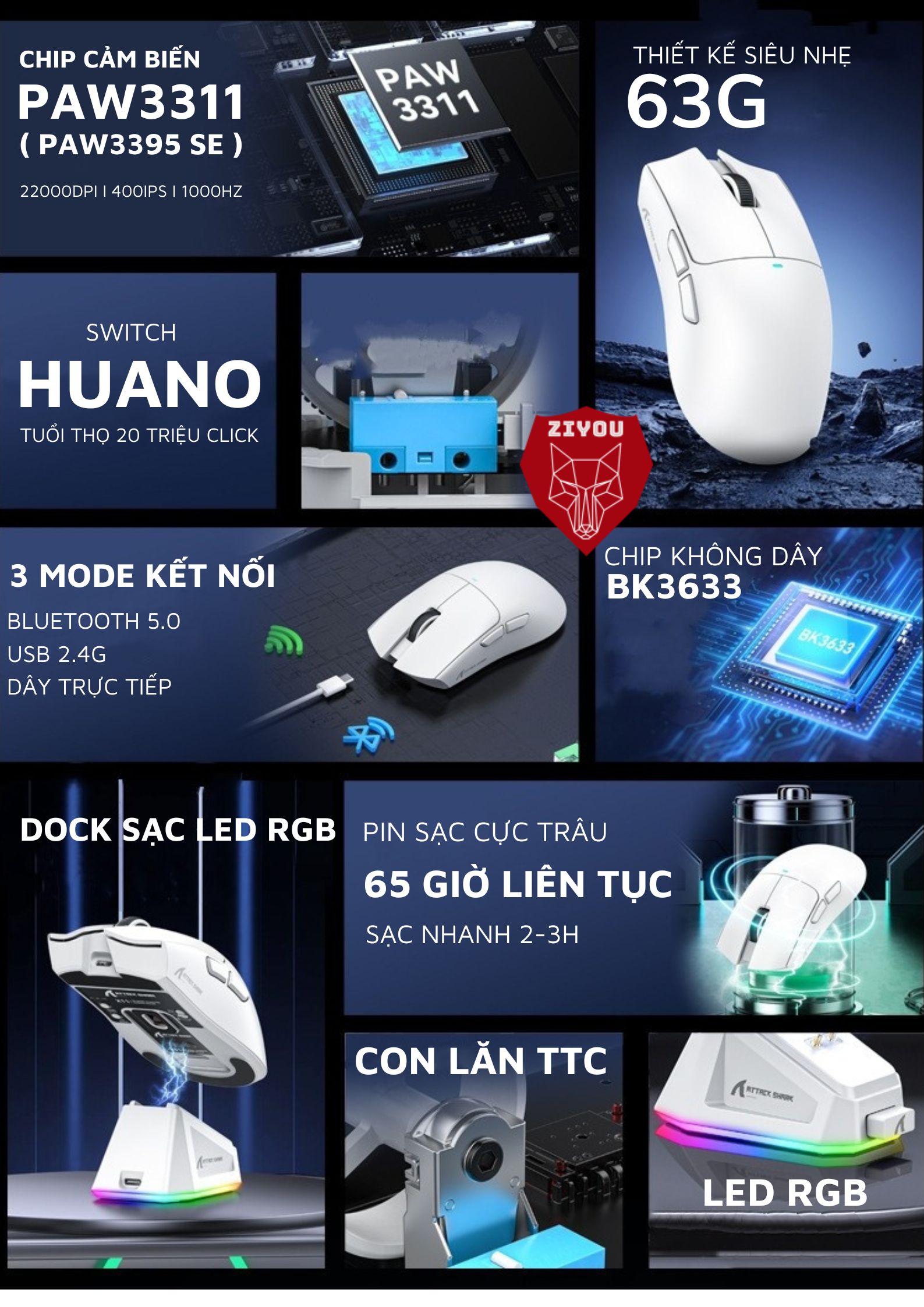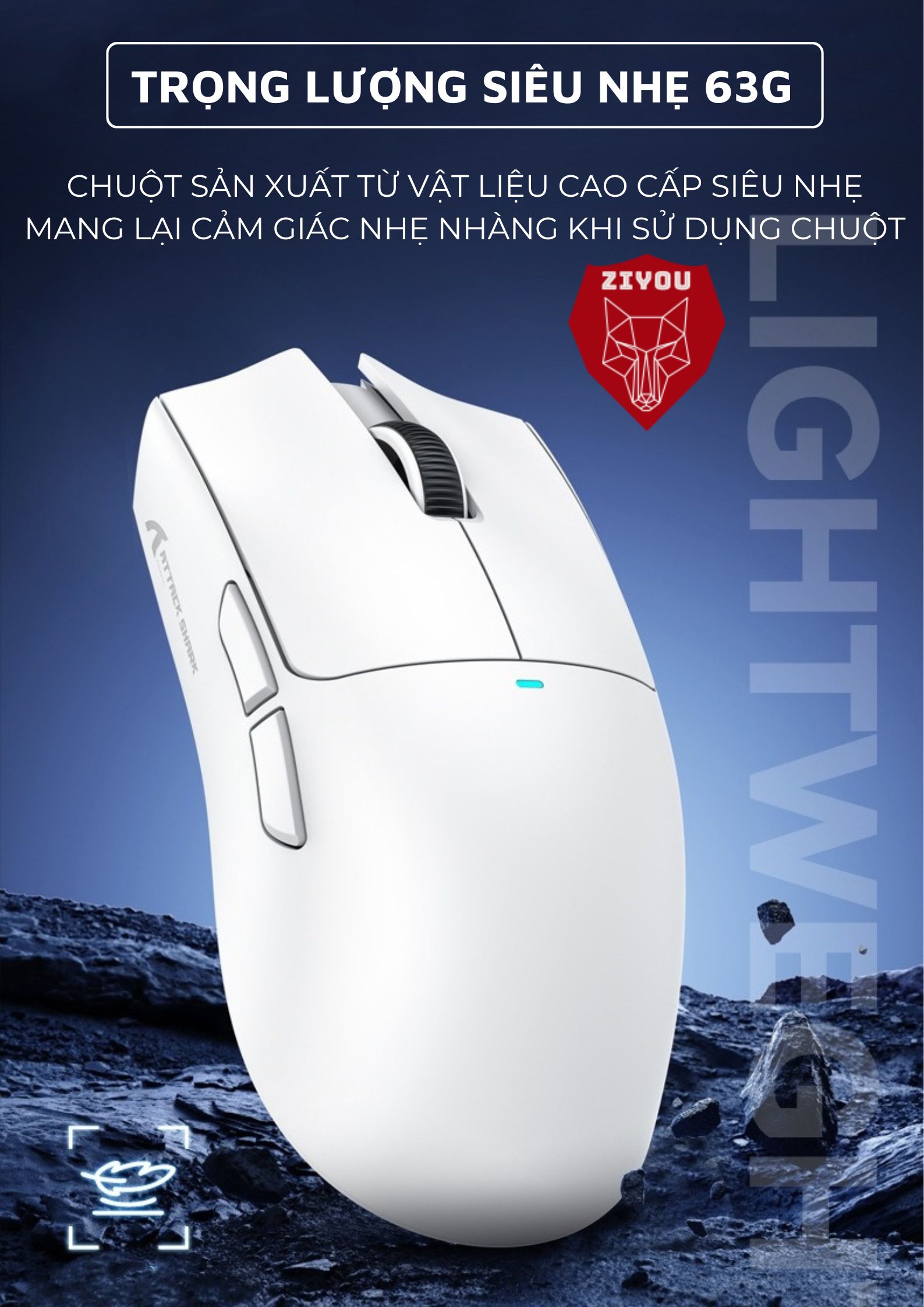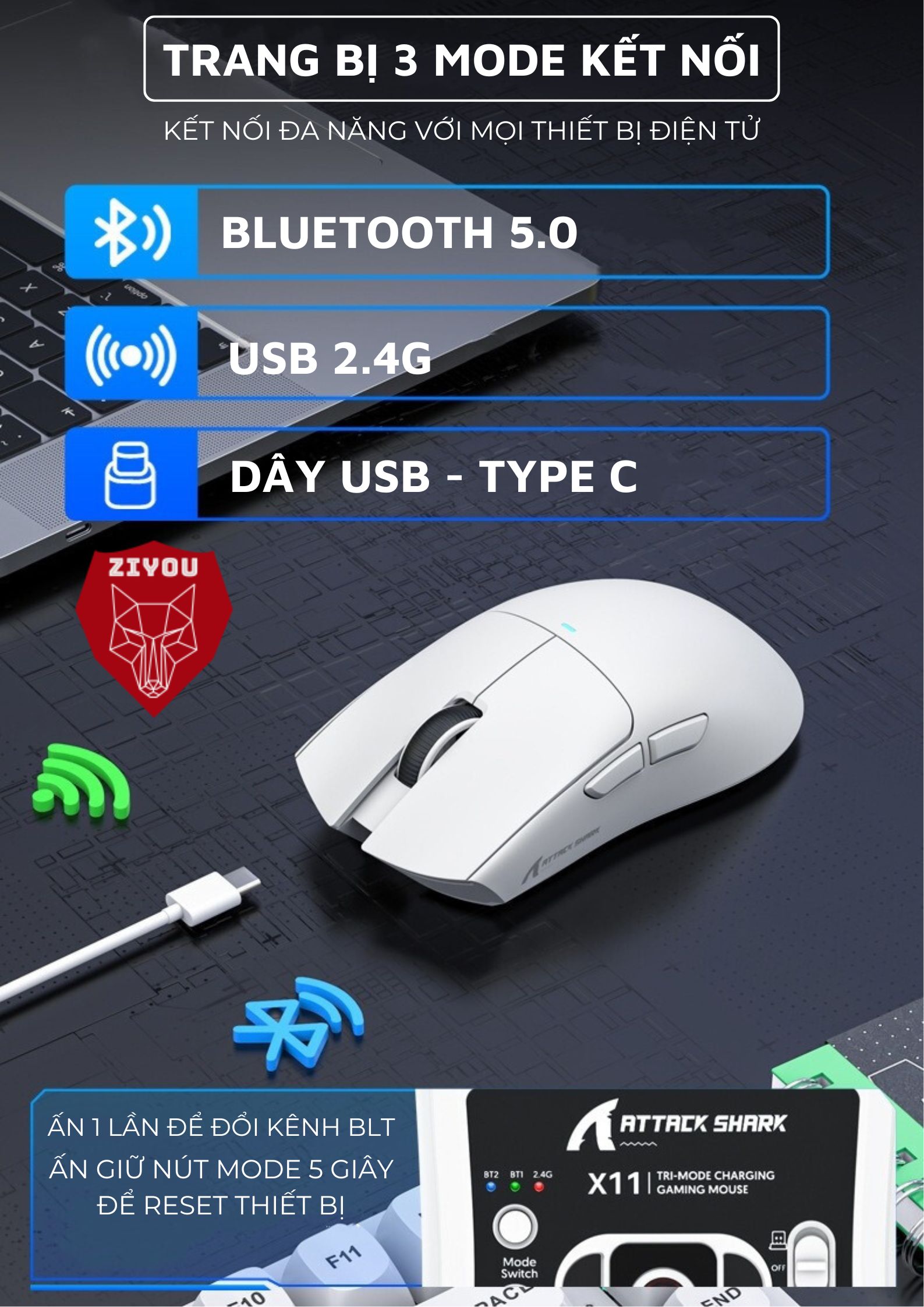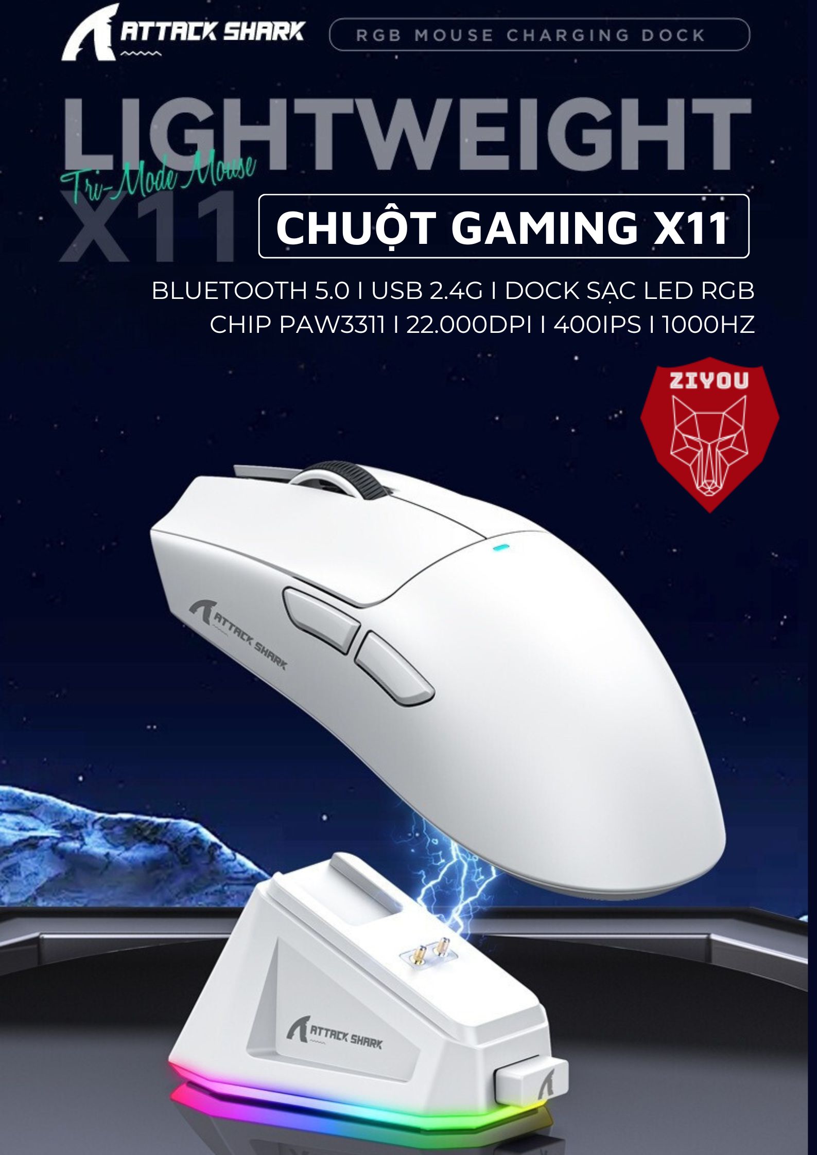 Chuột Không Dây Bluetooth Chuyên Gaming Ziyou Attack Shark X11 Chip Khủng PAW3311 Pollingrate 1Khz