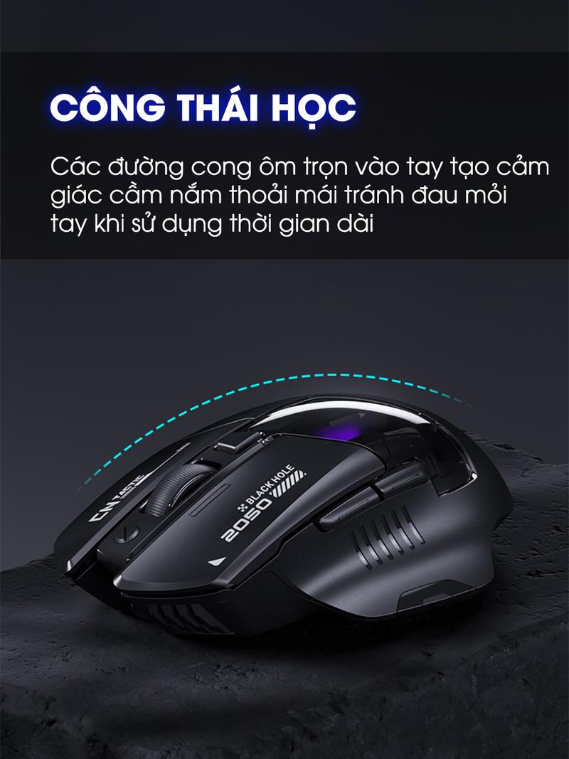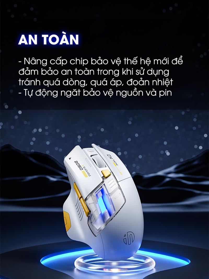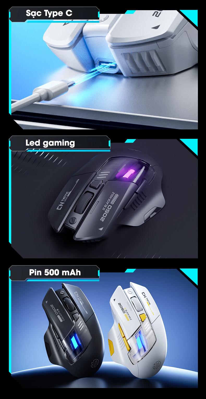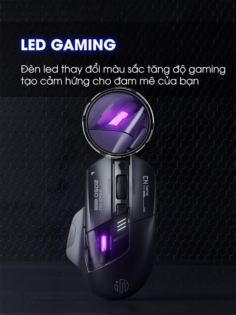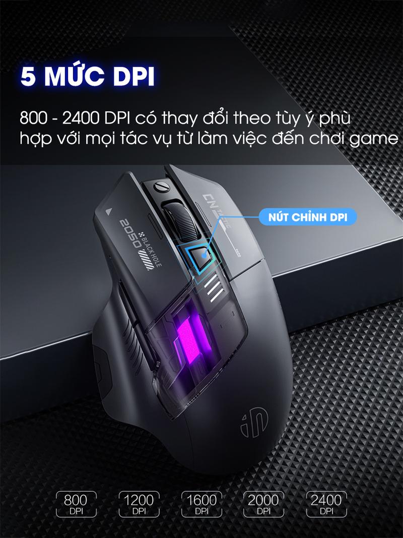 Chuột không dây gaming SIDOTECH INPHIC A9 PRO MAX bluetooth silent chống ồn pin sạc 6 nút bấm led RGB 5 mức DPI