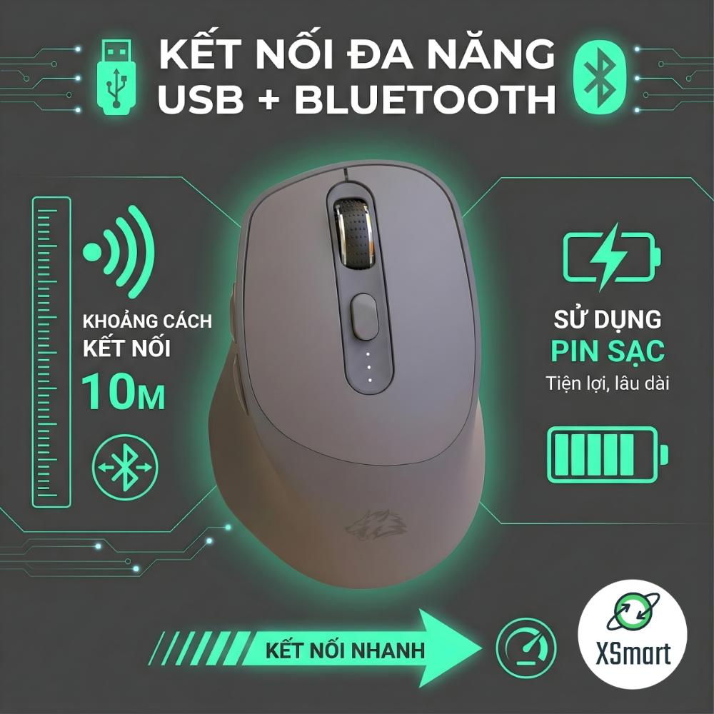 Chuột Không Dây Máy Tính Bluetooth X7 Wireless Pin Sạc Kết Nối 2 Chế Độ Cho Mọi Thiết Bị Máy Tính, Laptop