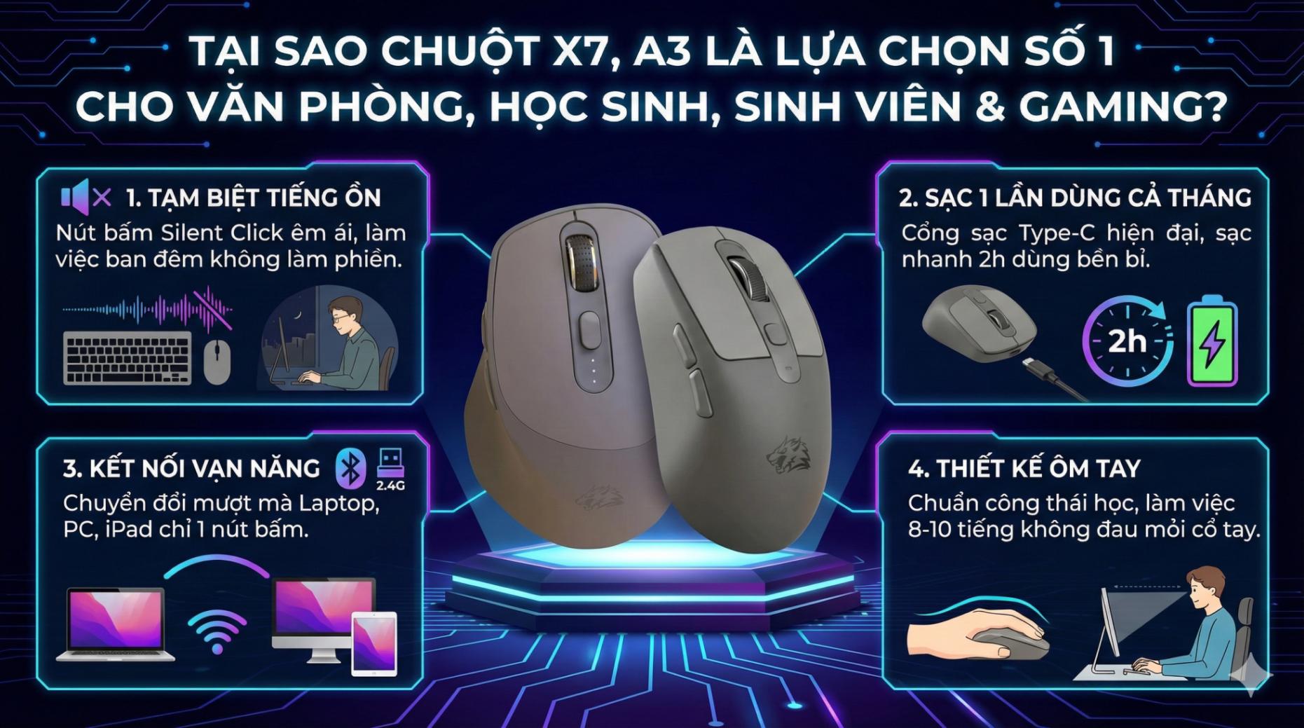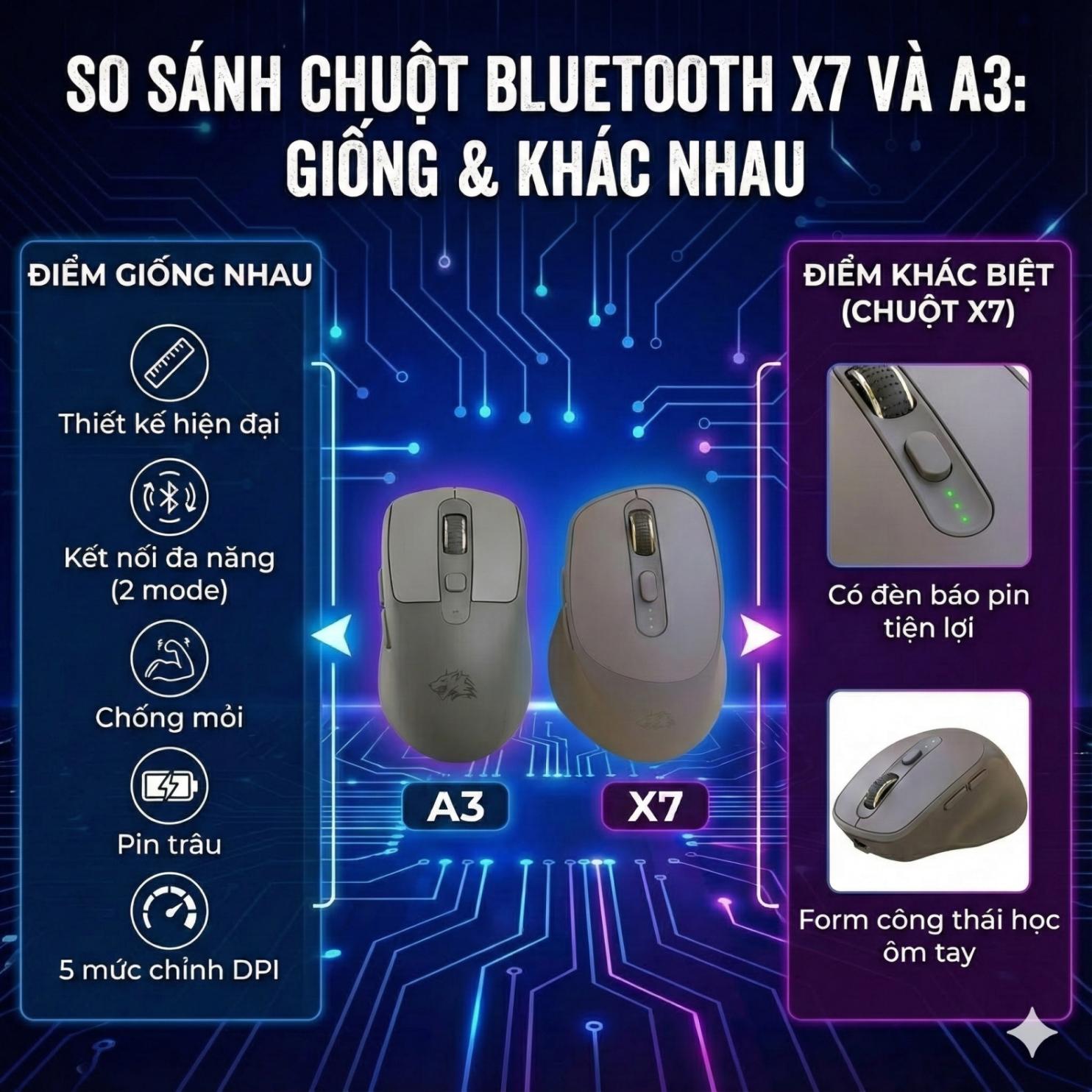Chuột Bluetooth + 2.4G không dây X7 Wireless cao cấp , sang trọng có nhiều màu sắc tinh tế cao cấp phù hợp sở thích và phong thủy của chủ nhân