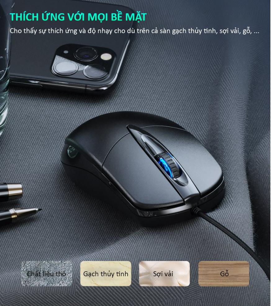 Độ nhạy 1200DPI phù hợp chơi game, làm việc văn phòng, thiết kế...