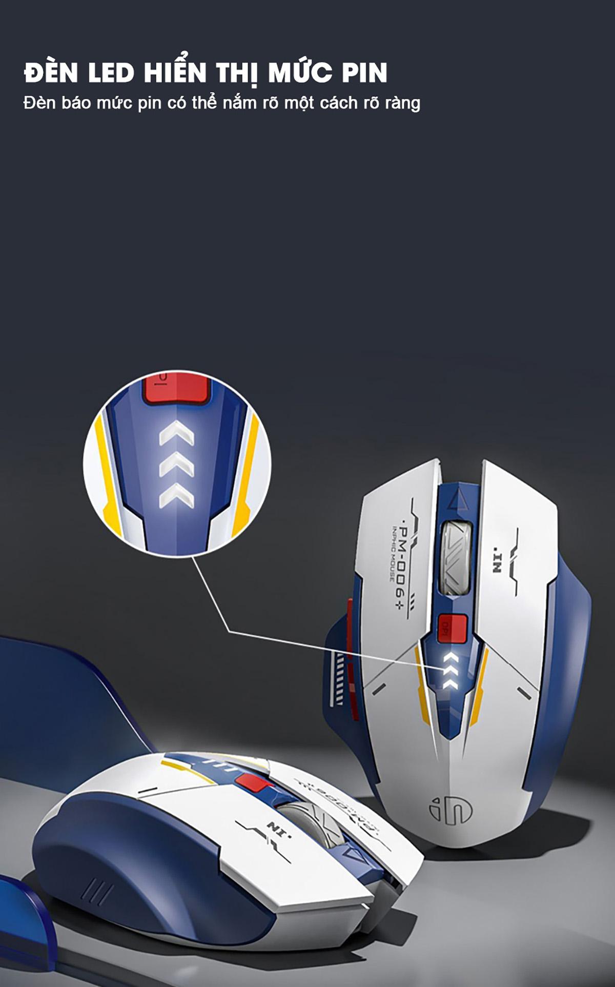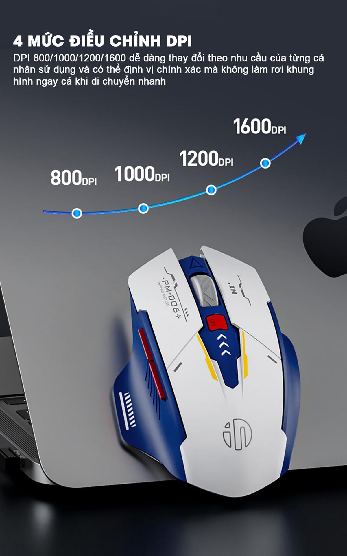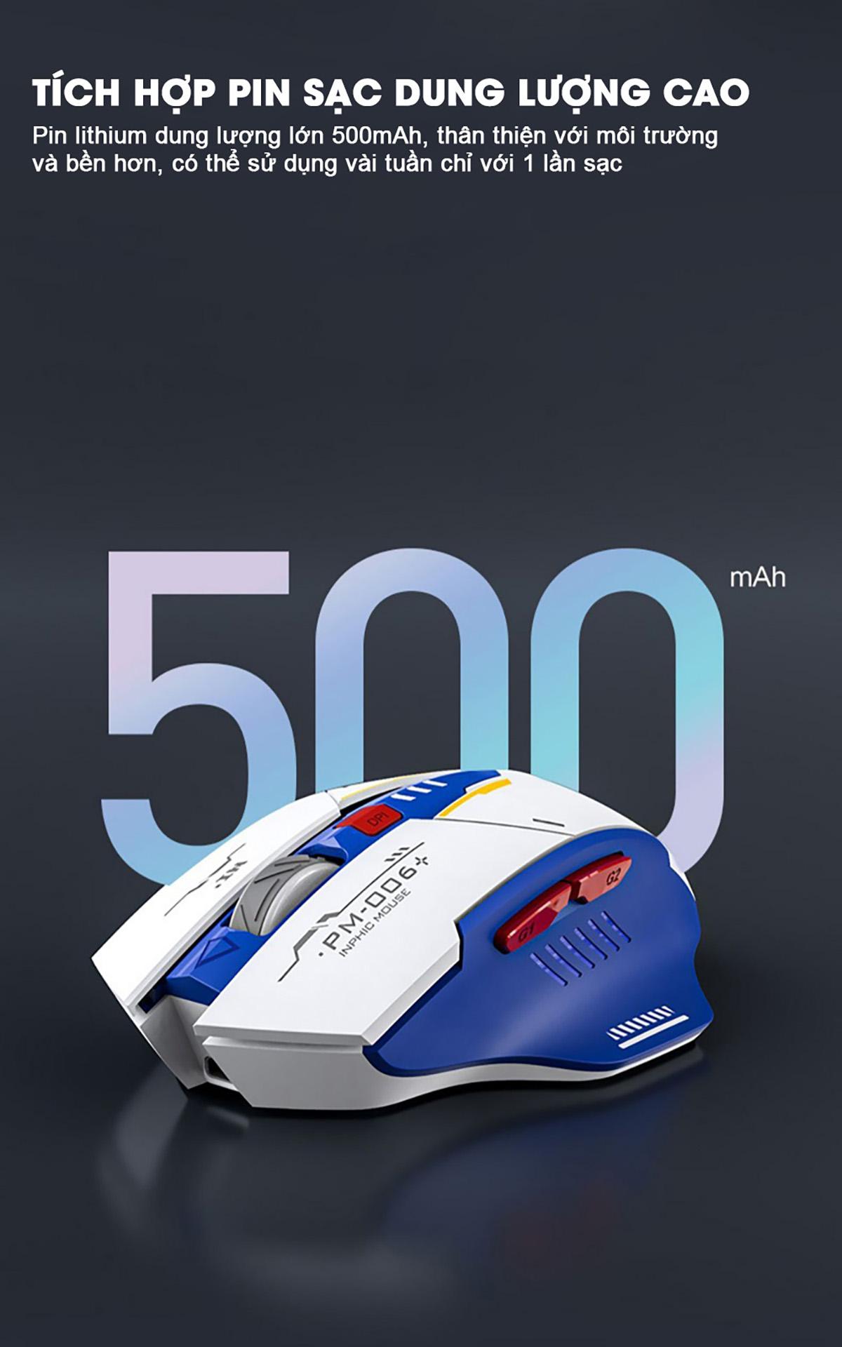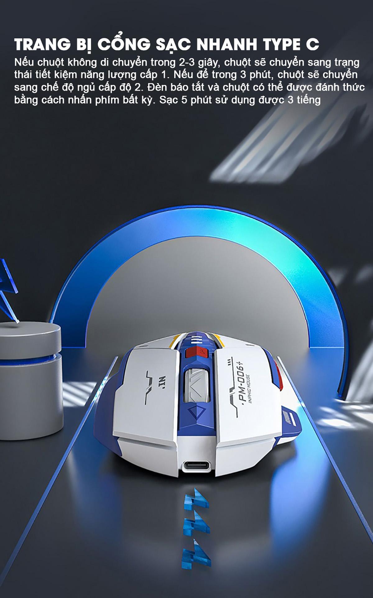 Chuột máy tính không dây gaming SIDOTECH INPHIC F9 GUNDAM pin sạc sử dụng liên tục 3 tháng 6 nút chức năng thiết kế công thái học 4 mức chỉnh DPI silent tắt tiếng chống ồn wireless chơi game liên minh csgo dota valorant trên PC Laptop