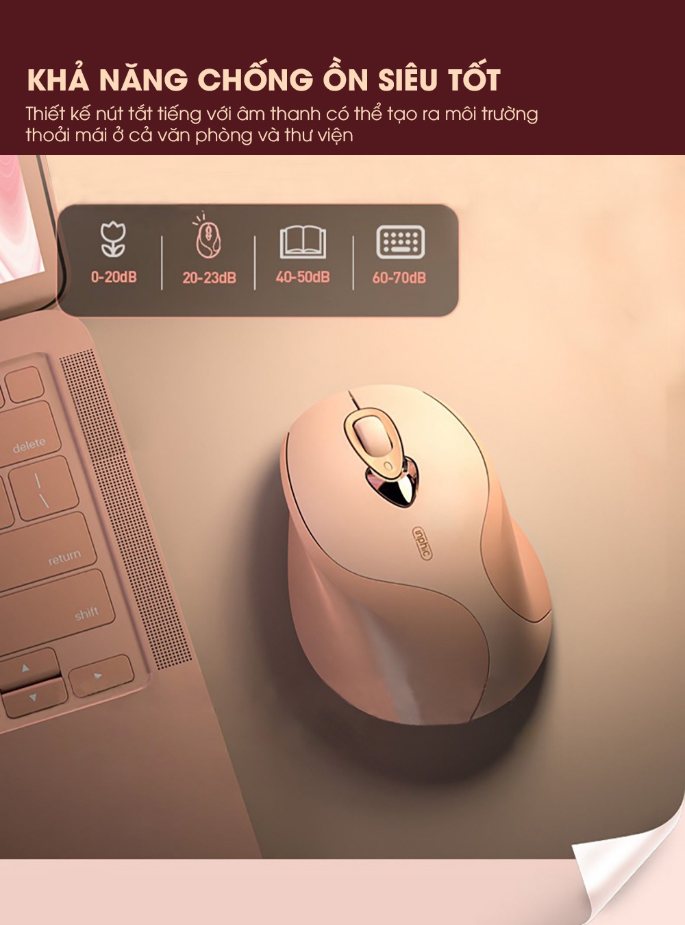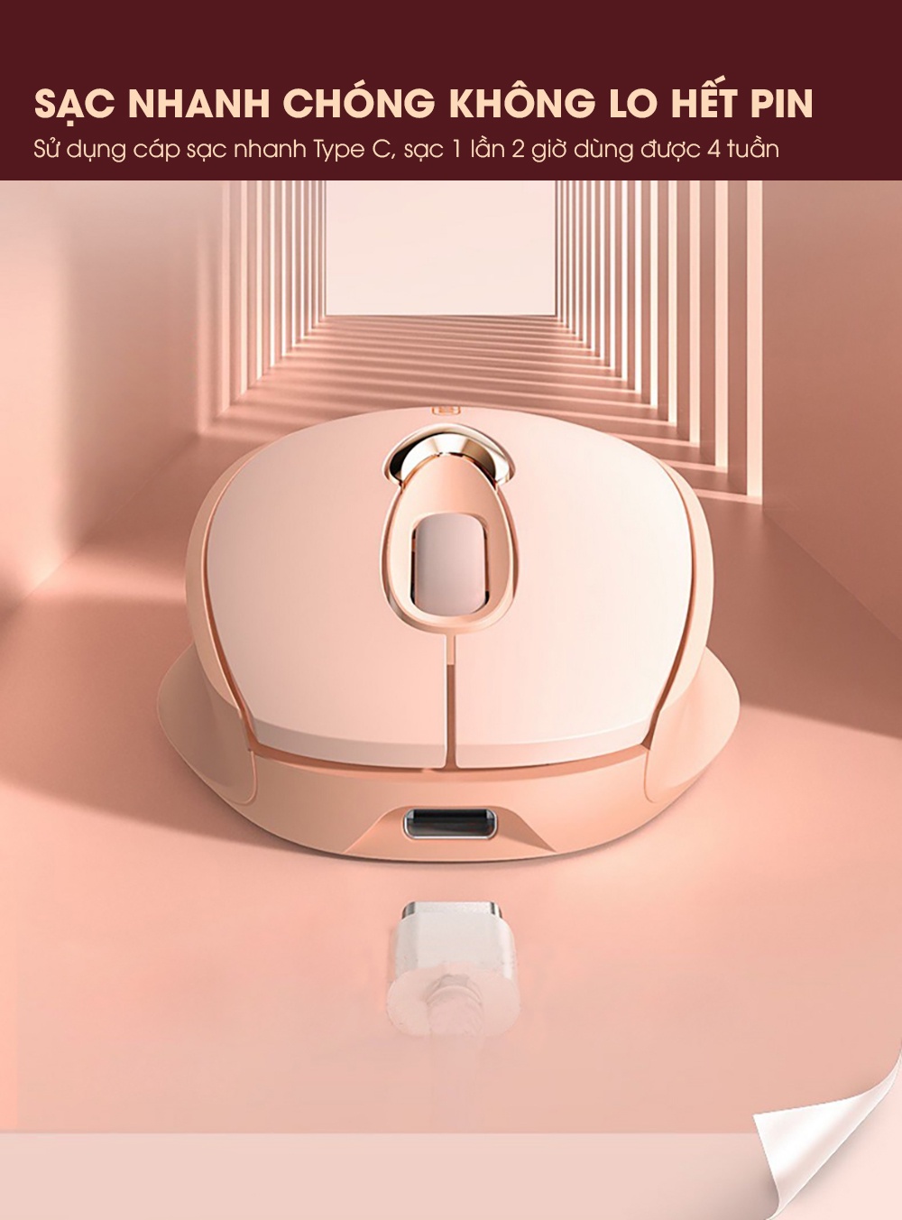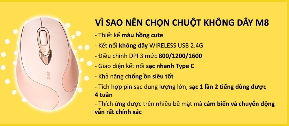 Chuột máy tính không dây SIDOTECH INPHIC M8 cute màu hồng tự sạc pin dòng silent click chống ồn máy tính laptop masbook