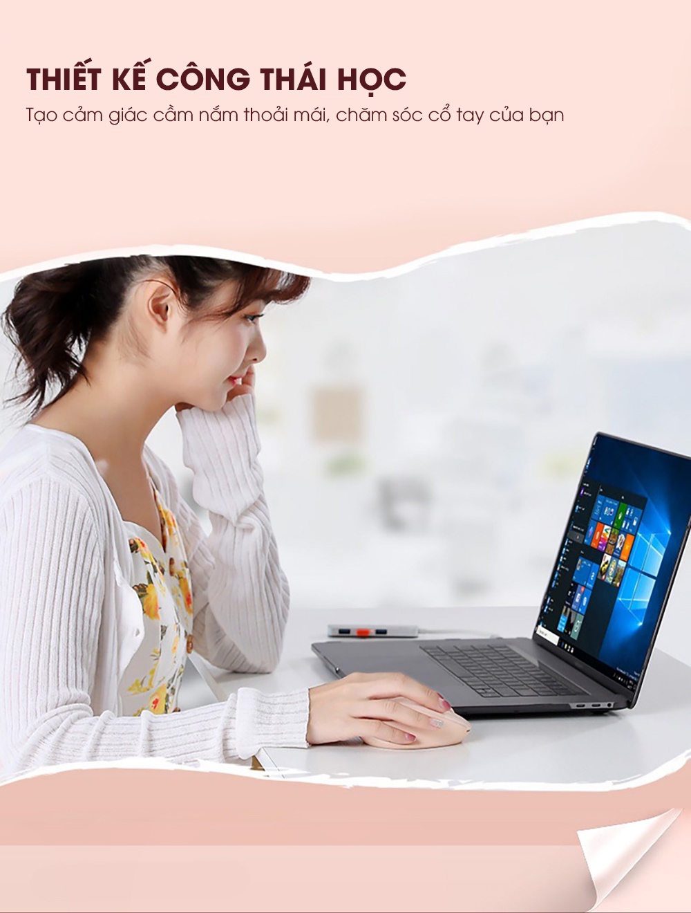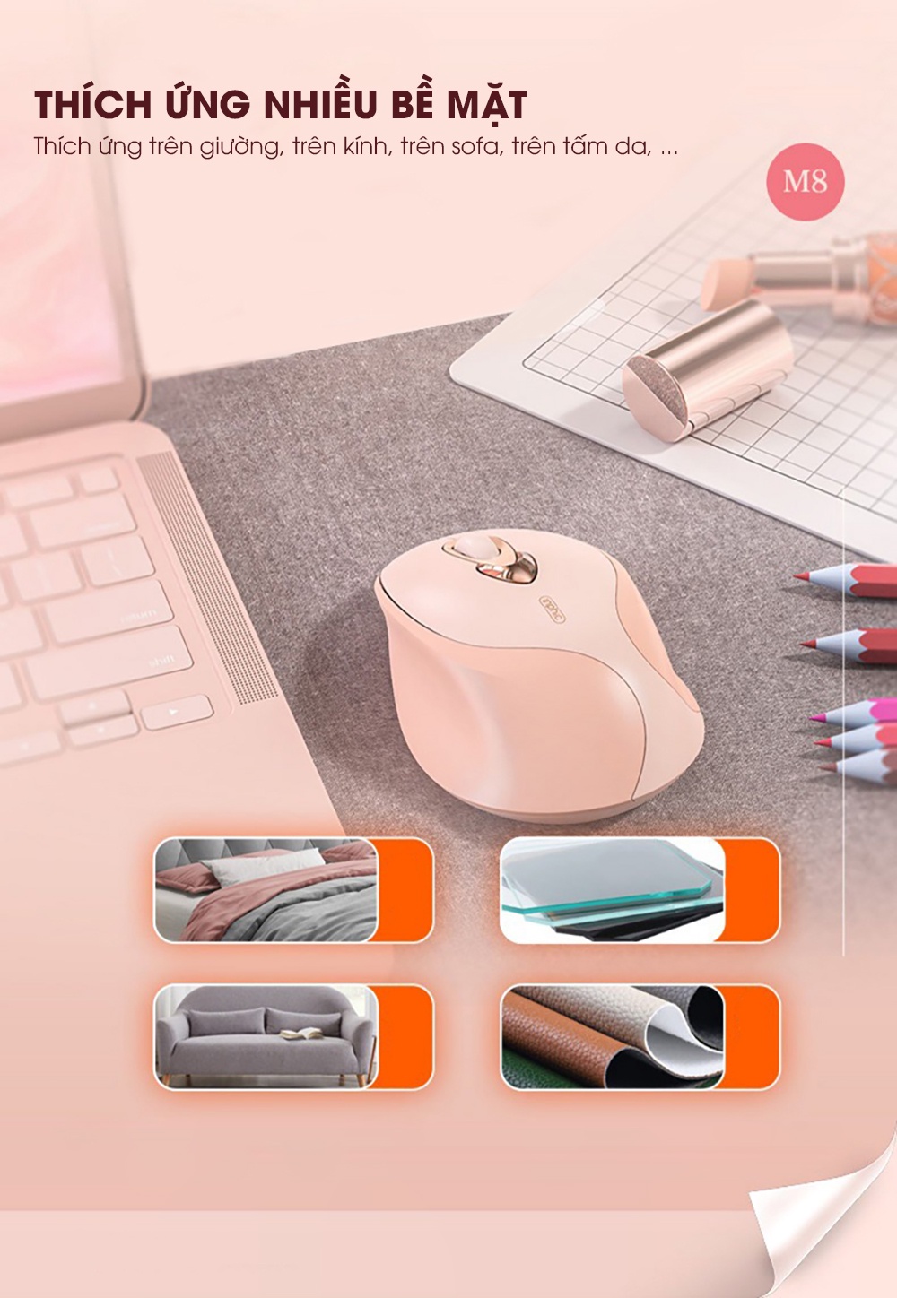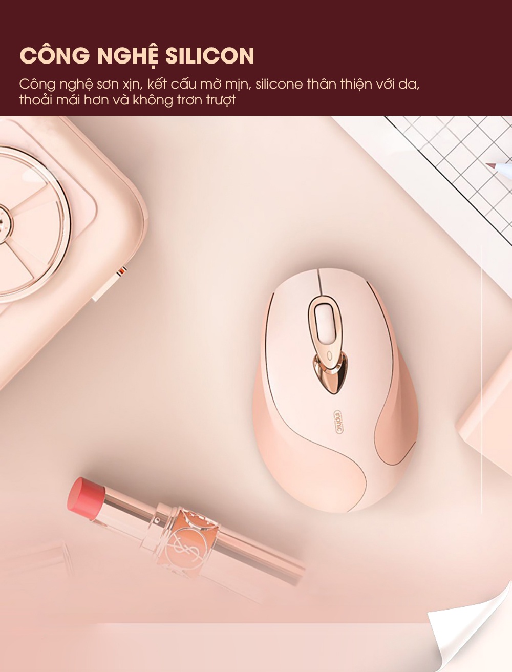 Chuột máy tính không dây SIDOTECH INPHIC M8 cute màu hồng tự sạc pin dòng silent click chống ồn máy tính laptop masbook