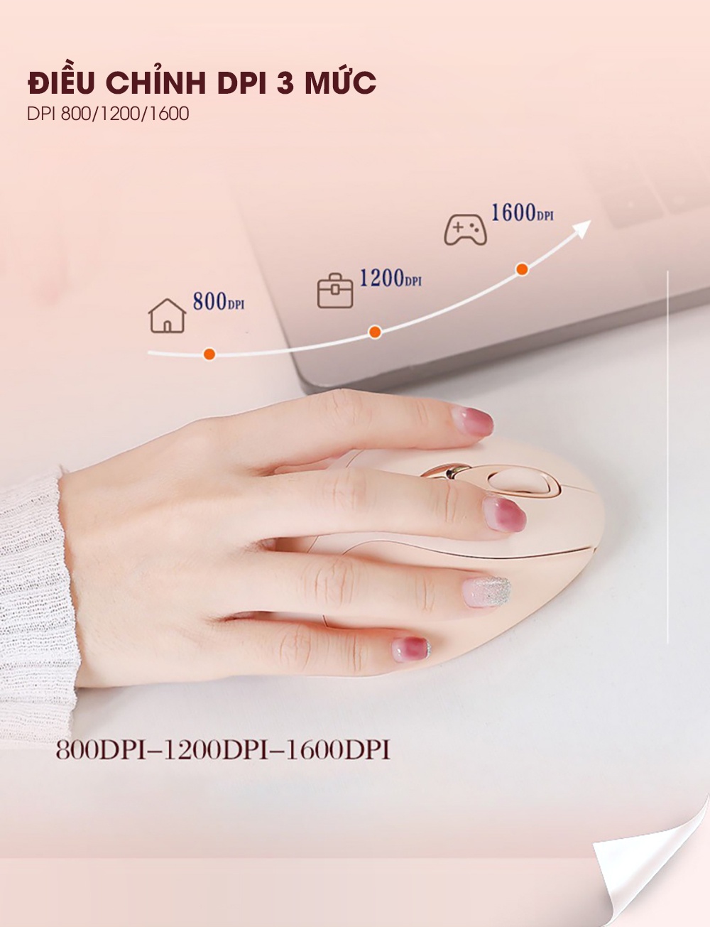 • Điều chỉnh DPI 3 mức 800/1200/1600