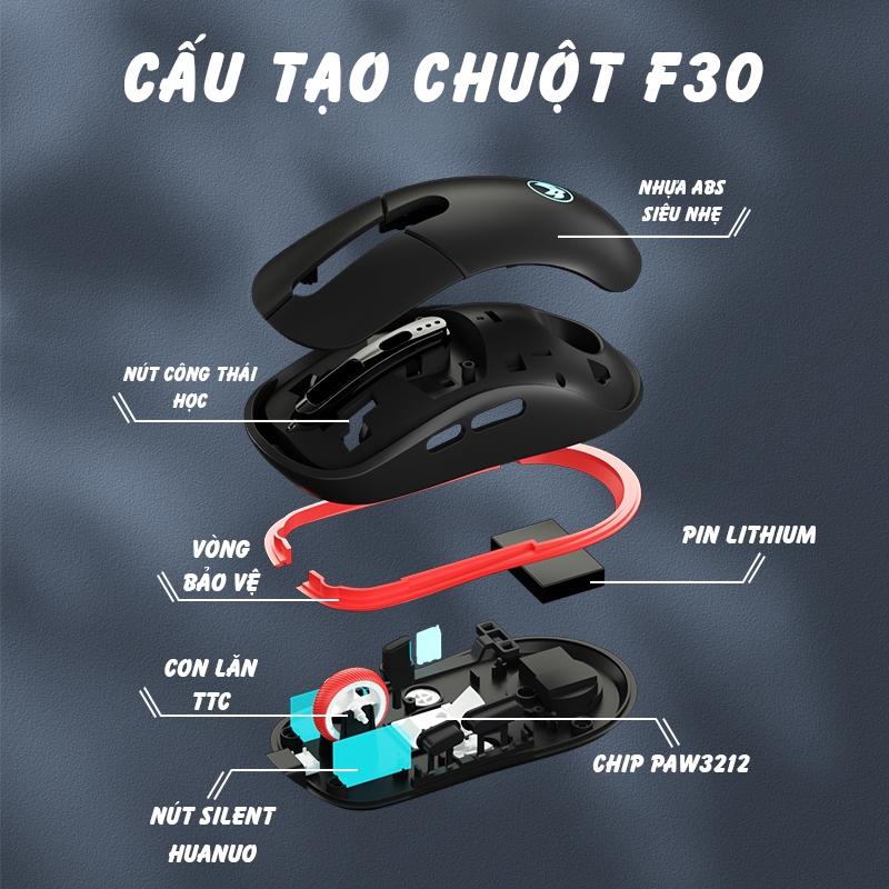 Chuột Silent Gaming Atas F30 Không dây Bluetooth - 3 MODE - Pin sạc 500mah - Sử dụng liên tục 50h - Có app Marco