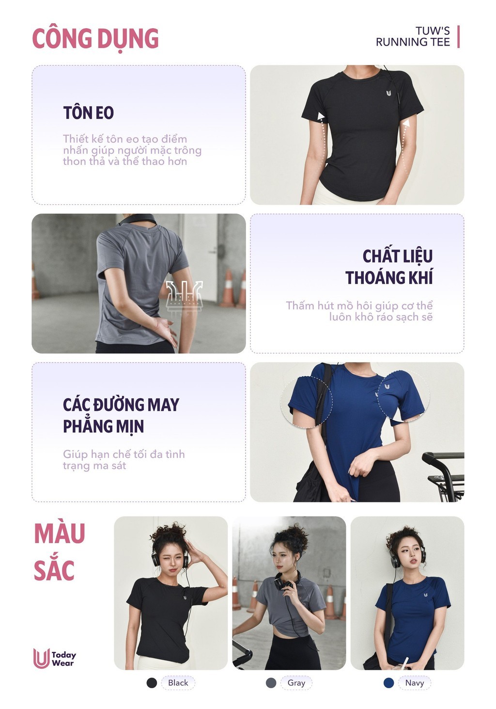 Combo 2 áo thun thể thao nữ có BIGSIZE Running Tee tập gym yoga cổ tròn ngắn tay vải thoáng mát co giãn Today U Wear