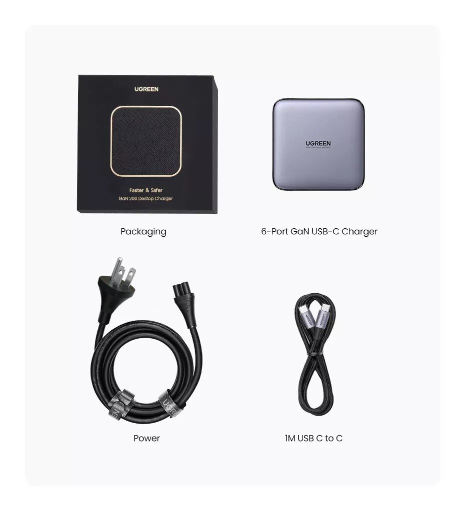 Củ sạc máy tính/ điện thoại, sạc nhanh UGREEN 200W CD271 Business Charger Nexode| Adapter| Công nghệ GaN II | 6 cổng PD USB | Miễn phí cáp sạc 3FT USB C đến C| Tương thích với Mac Pro/Air, iPad, iP 14/14 Pro Max, Galaxy,...| Bảo hành 18 tháng 1 đổi 1| 40914 40913
