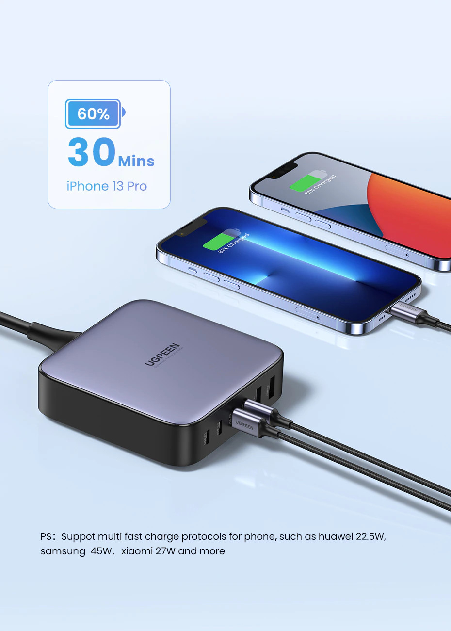 Củ sạc máy tính/ điện thoại UGREEN 200W CD271 Nexode|GaN II|6 cổng sạc nhanh |Free cáp USB C to C|BH 18 tháng 1 đổi 1 40
