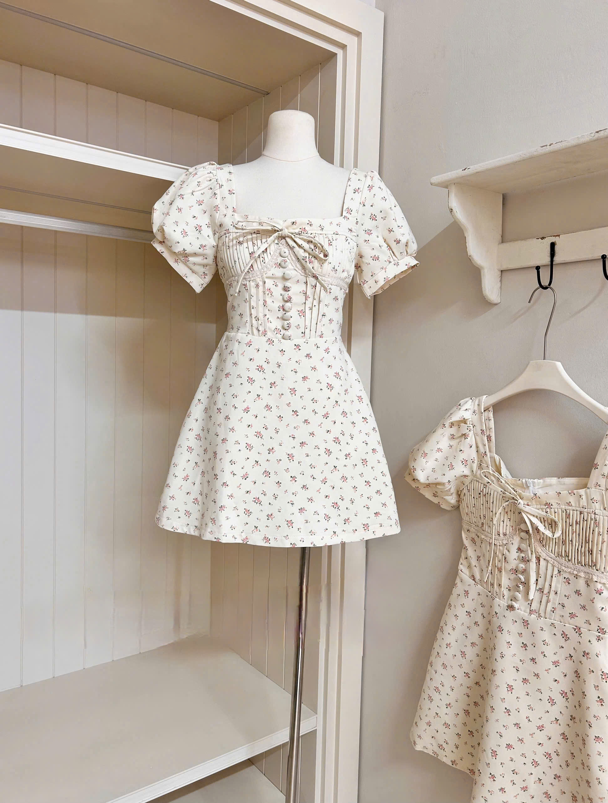 Đầm hoa nhí tay bồng phối cúc dáng ngắn - hoa nhí mới