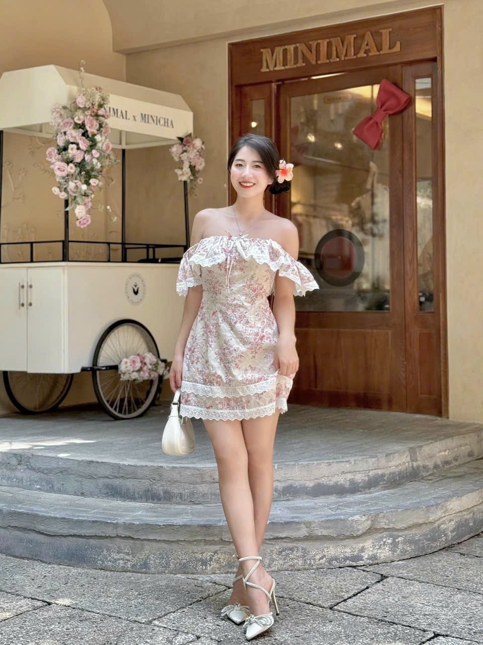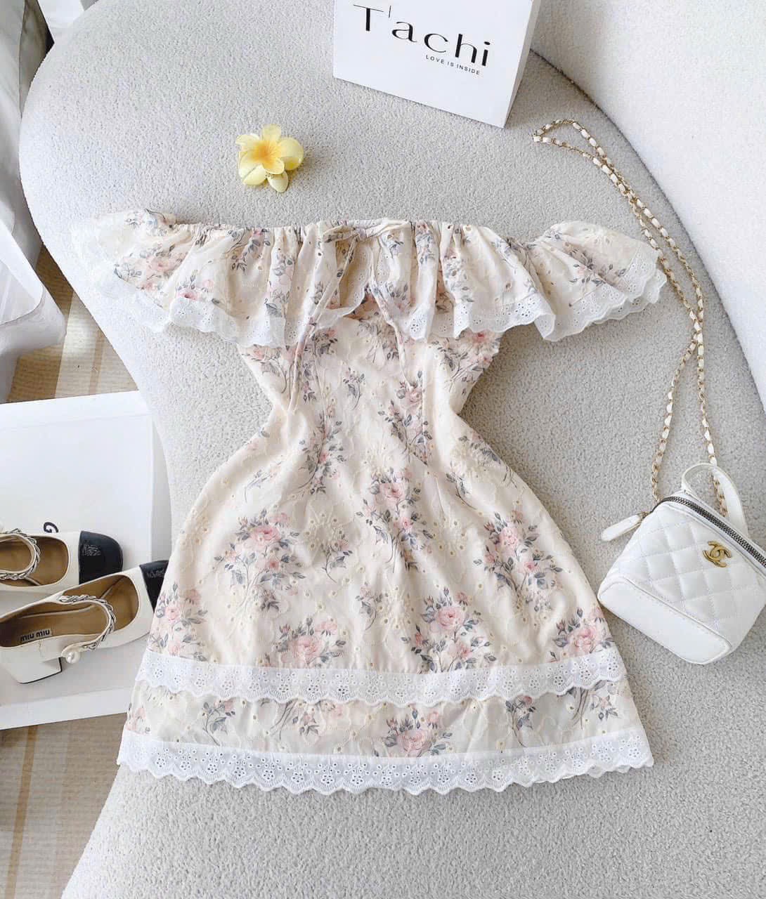 Đầm ren hoa thiết kế trễ vai xinh xắn Robia Dress