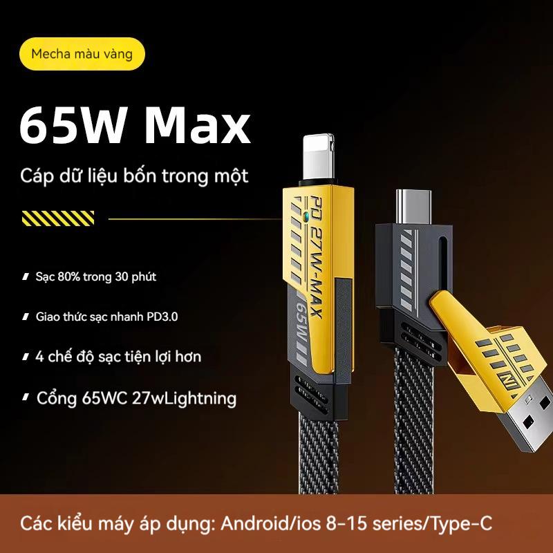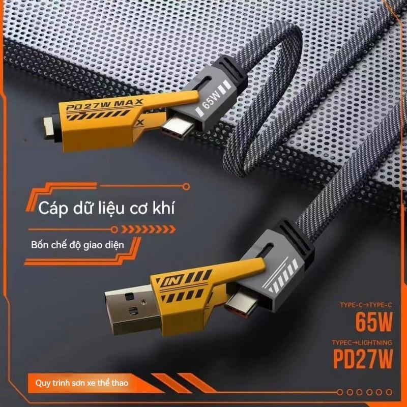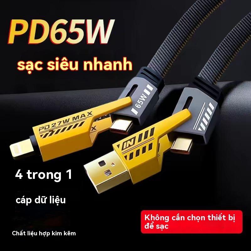 Dây Cáp Sạc Nhanh 20W => 65W 4 trong 1 cho typ.e-C bọc dù 4 cổng sạc cho 7plus x xsmax 11 12 13 14 15 pro max plus