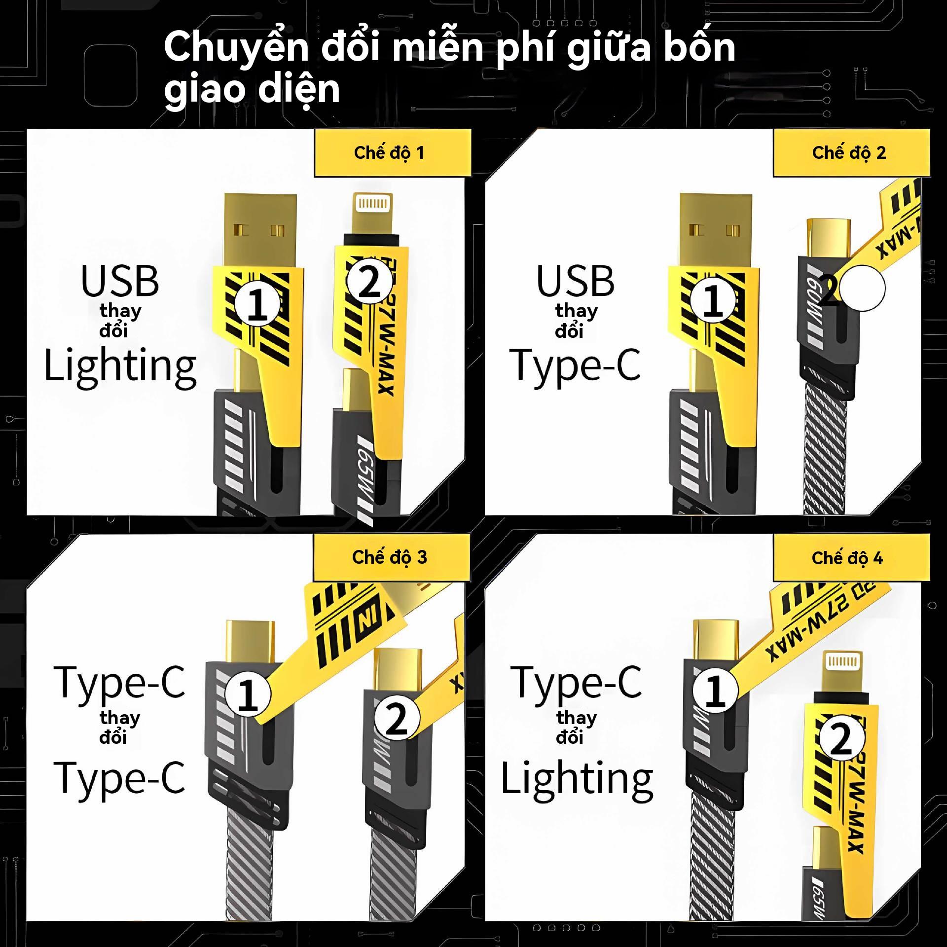 Cáp Sạc Nhanh 4 Đầu Đa Năng