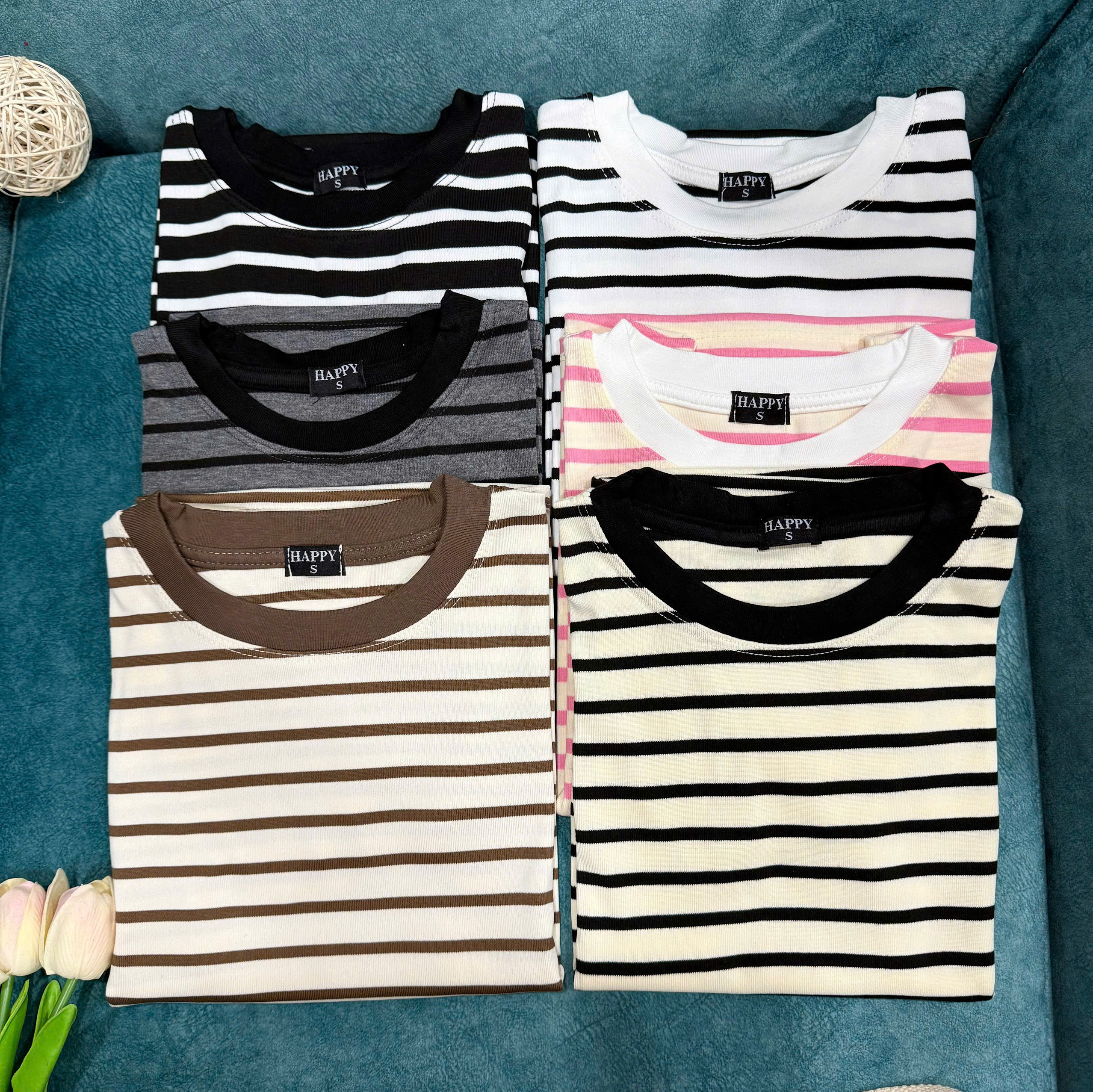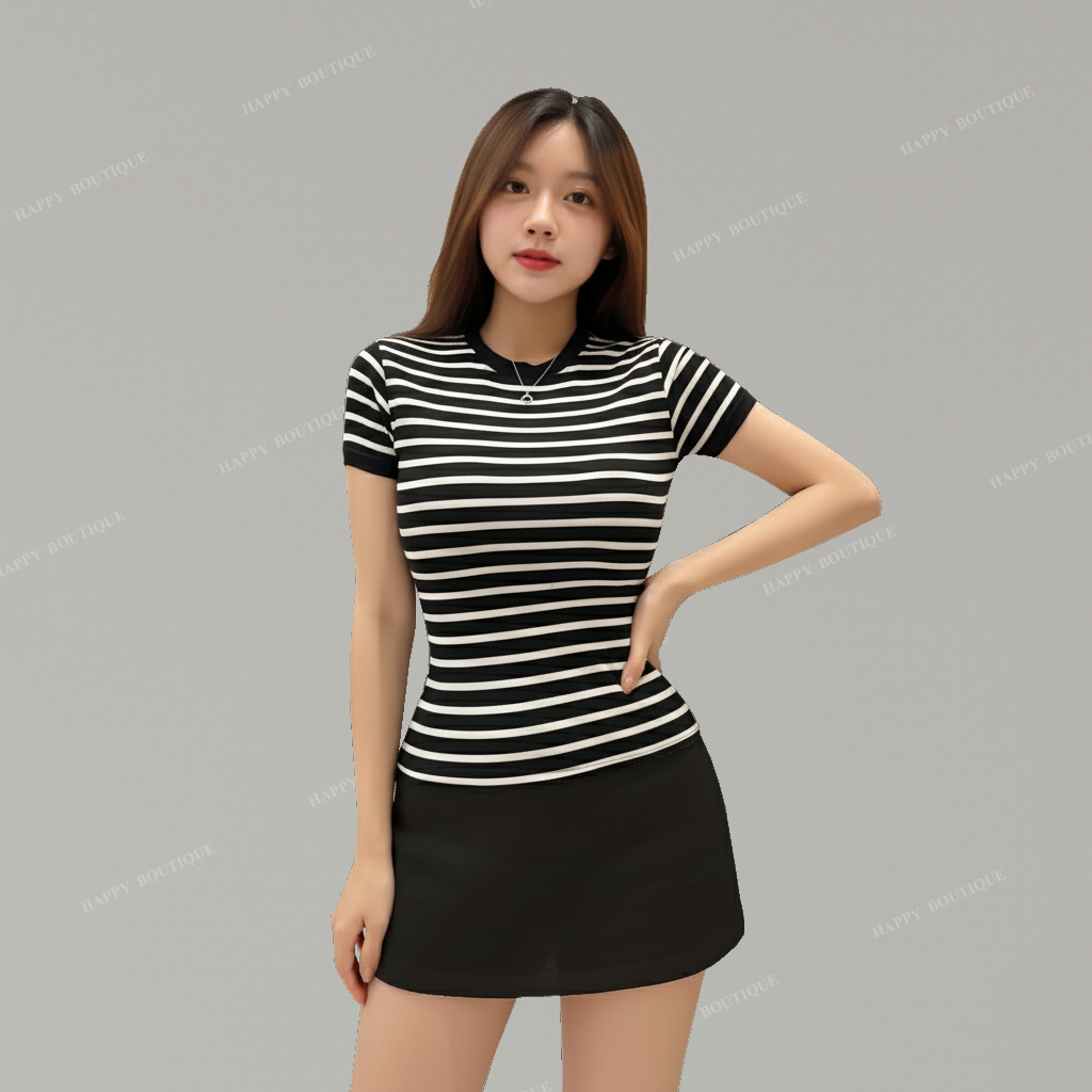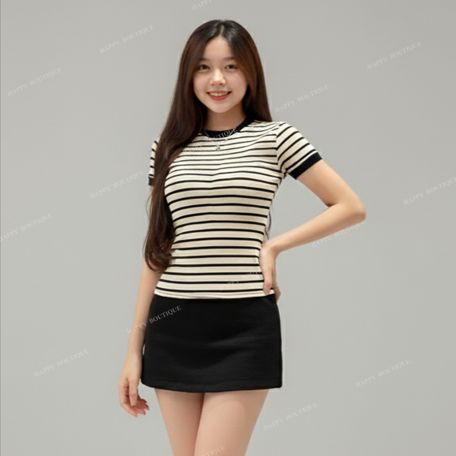[DEAL MỞ BÁN] Áo Thun Sọc Ôm Nữ Chiết Eo Tôn Dáng Basic Cotton Mềm Mịn HAPPY BOUTIQUE