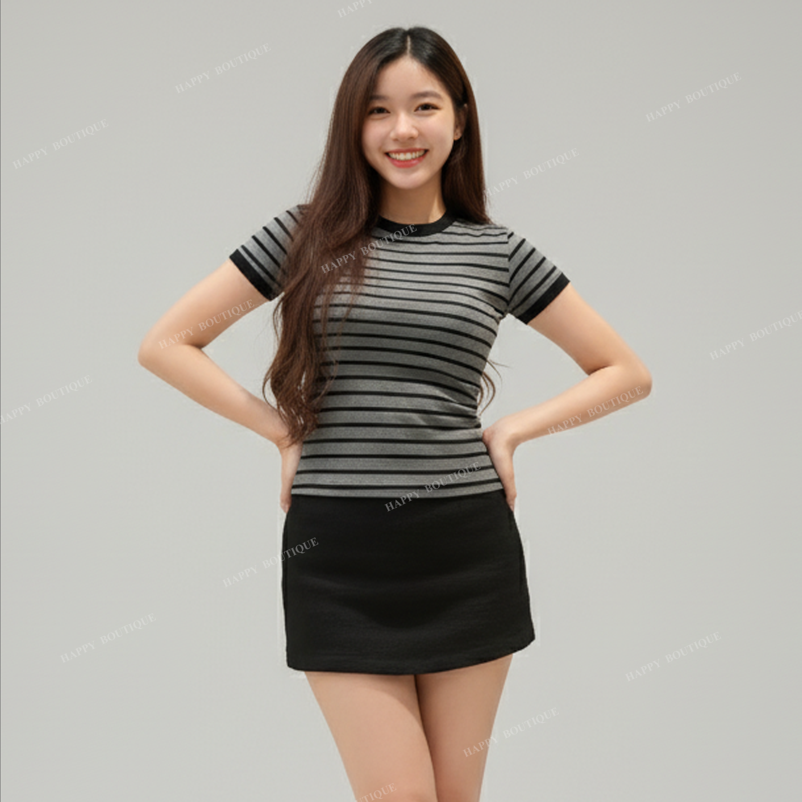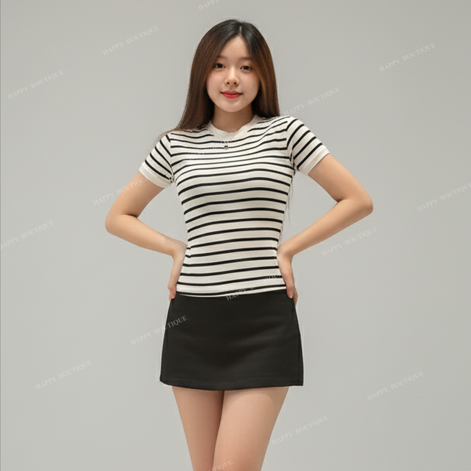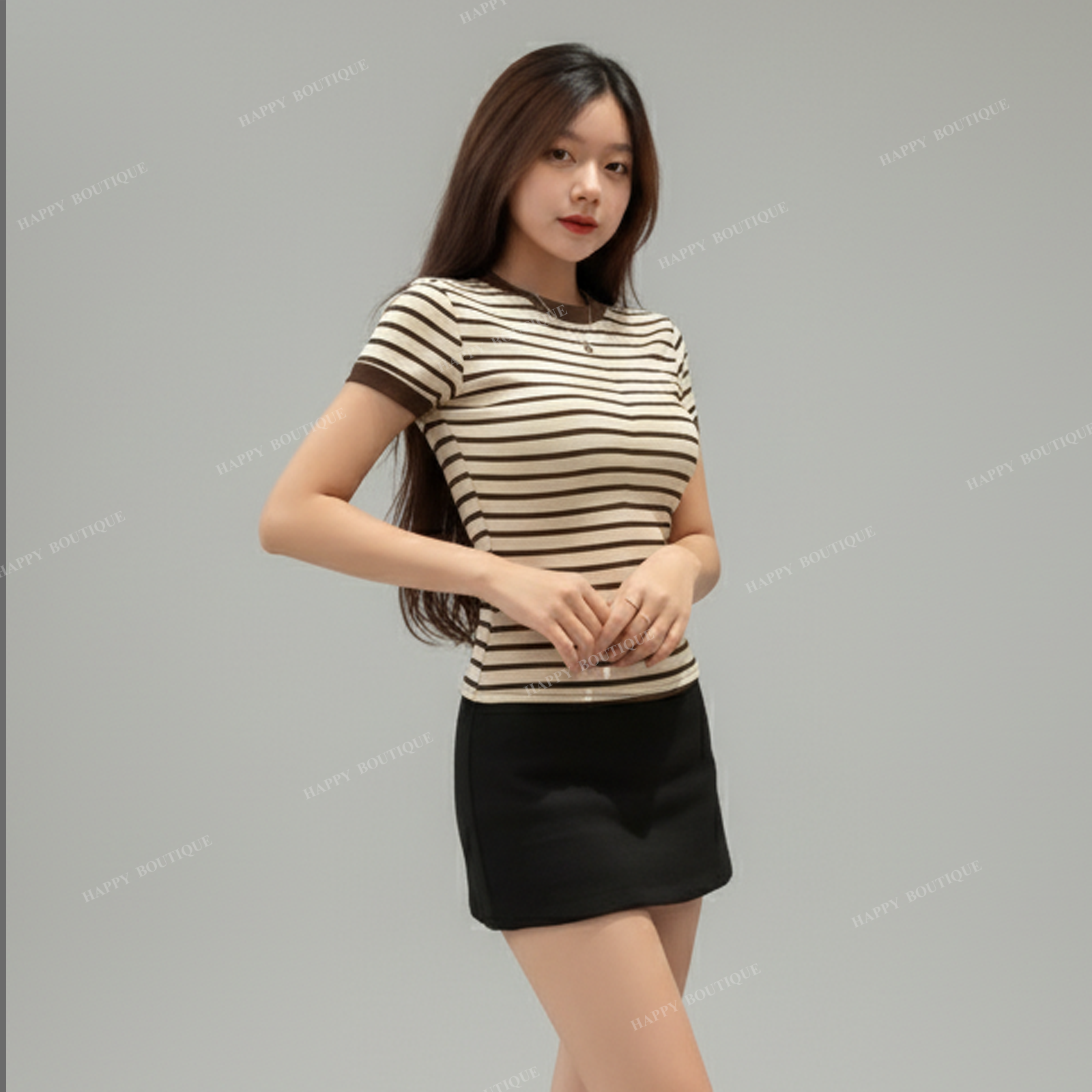 [DEAL MỞ BÁN] Áo Thun Sọc Ôm Nữ Chiết Eo Tôn Dáng Basic Cotton Mềm Mịn HAPPY BOUTIQUE