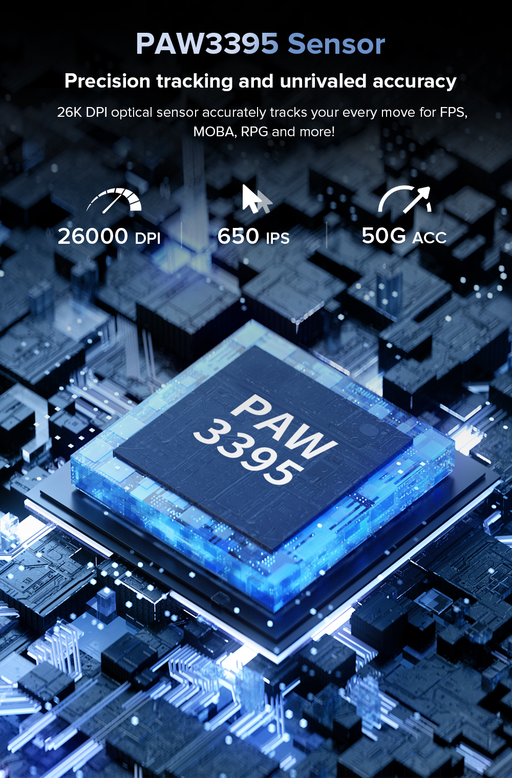 Điều chỉnh dpi thông qua trình điều khiển: 0 - 26000 dpi
