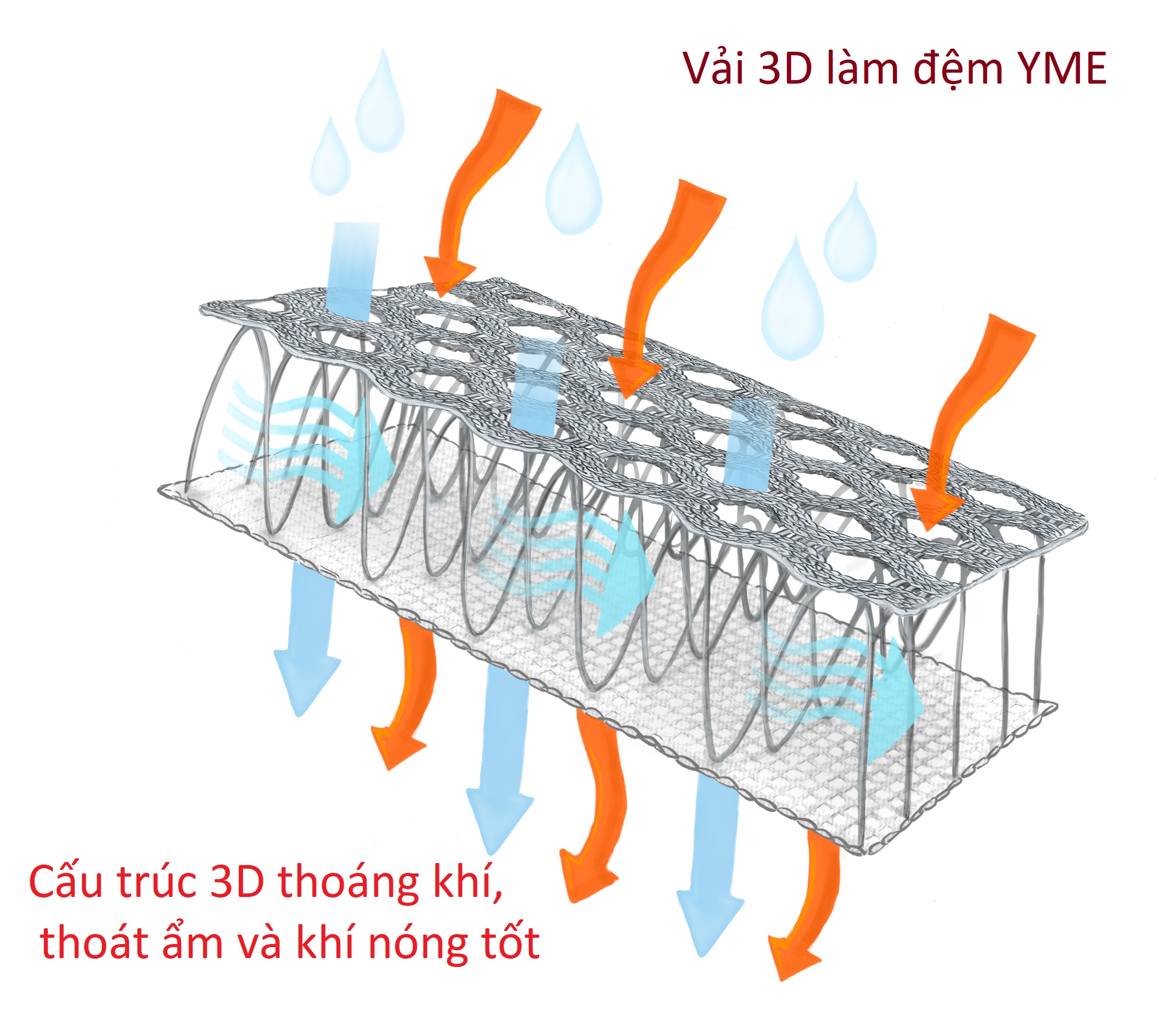+ Vỏ đệm là vải lưới 3D 3 lớp thoáng khí, đàn hồi tốt