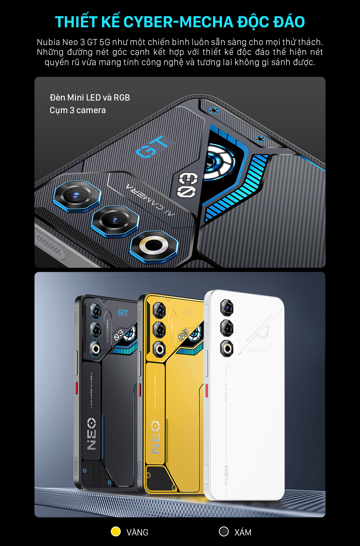 Điện thoại Gaming Nubia Neo 3 GT 5G 24(12+12)GB I 256GB I OLED 1300 nits I 6000mAh sạc 80W I Game Space 3.0