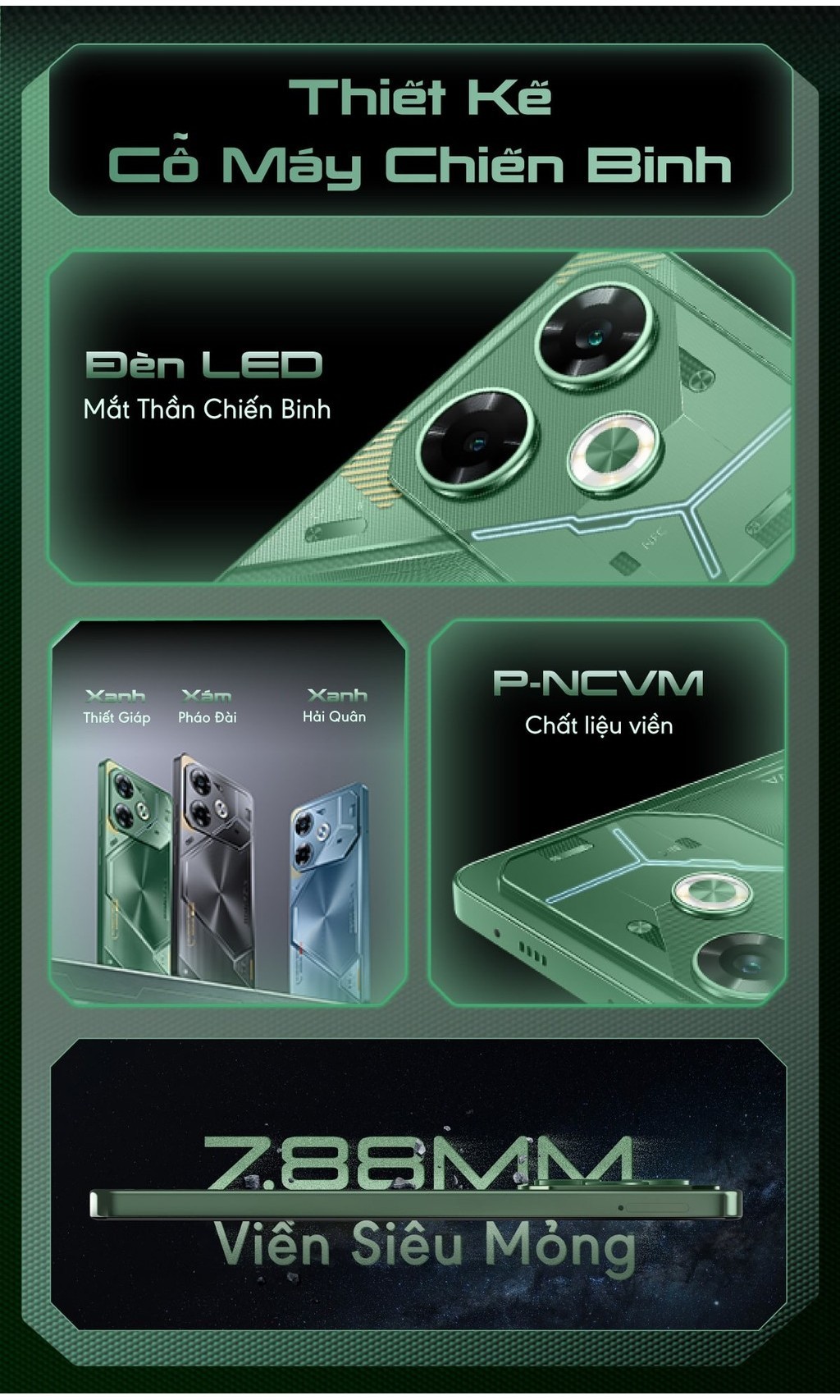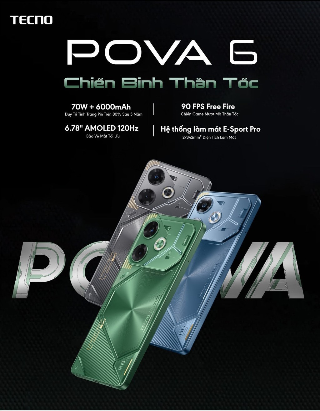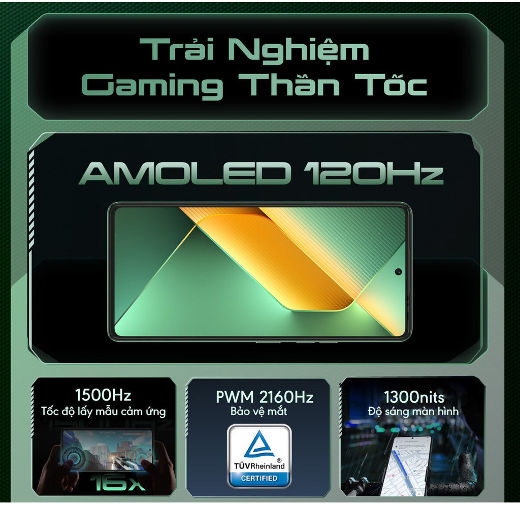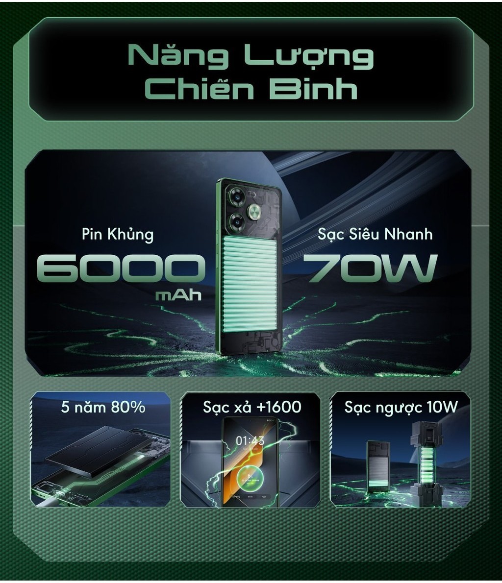 Điện thoại gaming Tecno Pova 6 (8+8)GB/256GB I 6000mAh + 70W I AMOLED 120Hz I 108MP