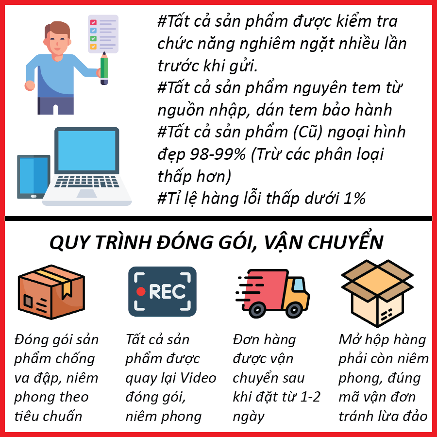 - Mặc định máy đẹp, màn đẹp 97-98%, các gói sản phẩm thấp hơn sẽ có phân loại riêng.