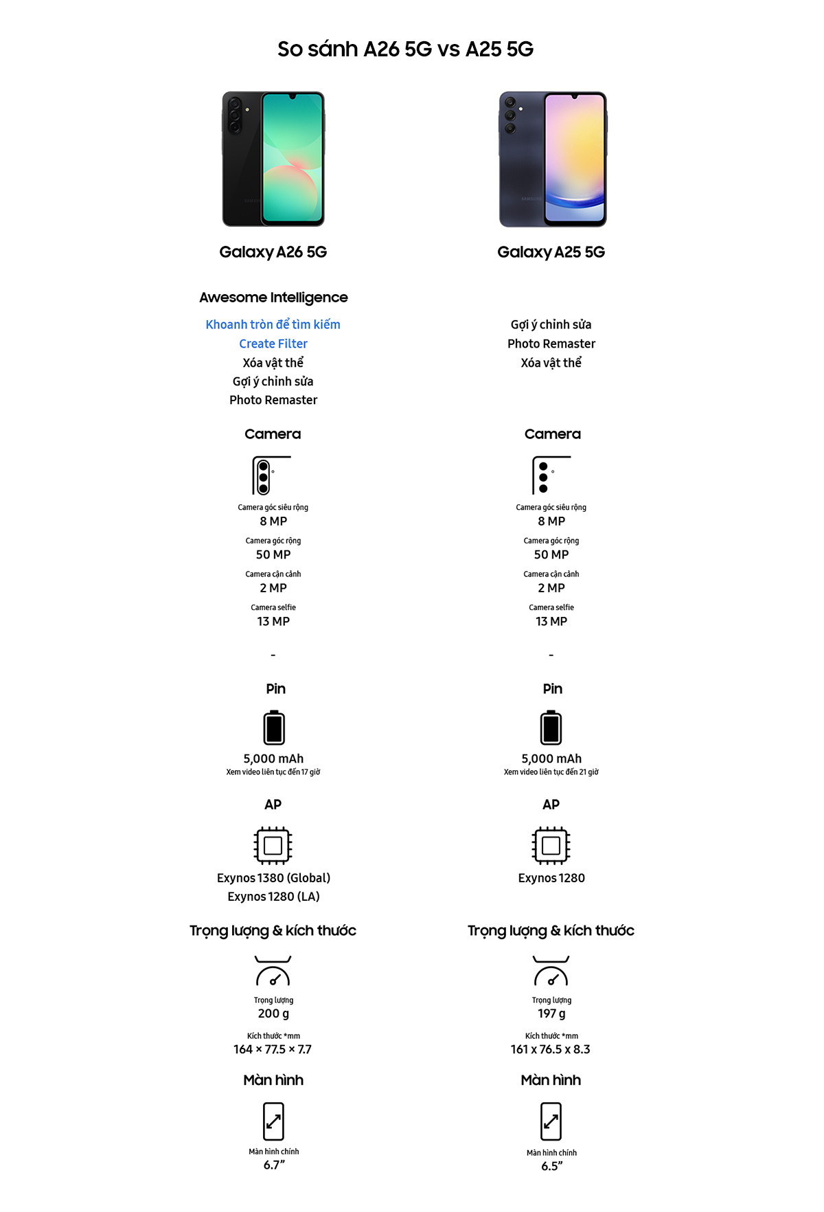 - Dung lượng pin: 5000 mAh