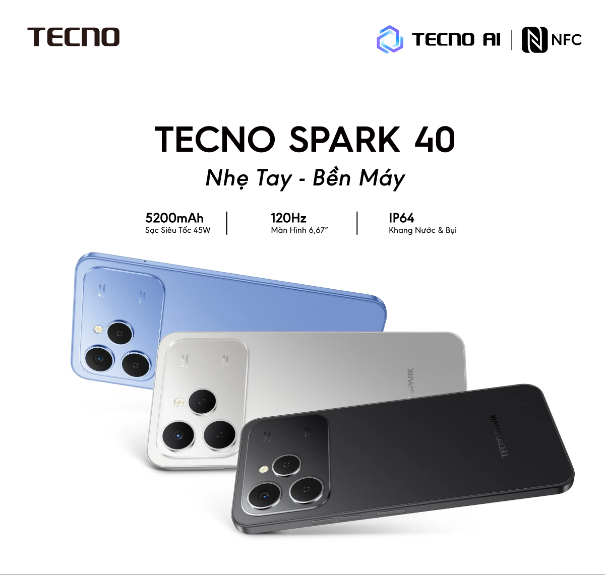 Điện thoại TECNO SPARK 40 (8GB/256GB) - Màn hình 6.67" 120Hz | Pin 5200 mAh + Sạc nhanh 45W | Loa kép | NFC