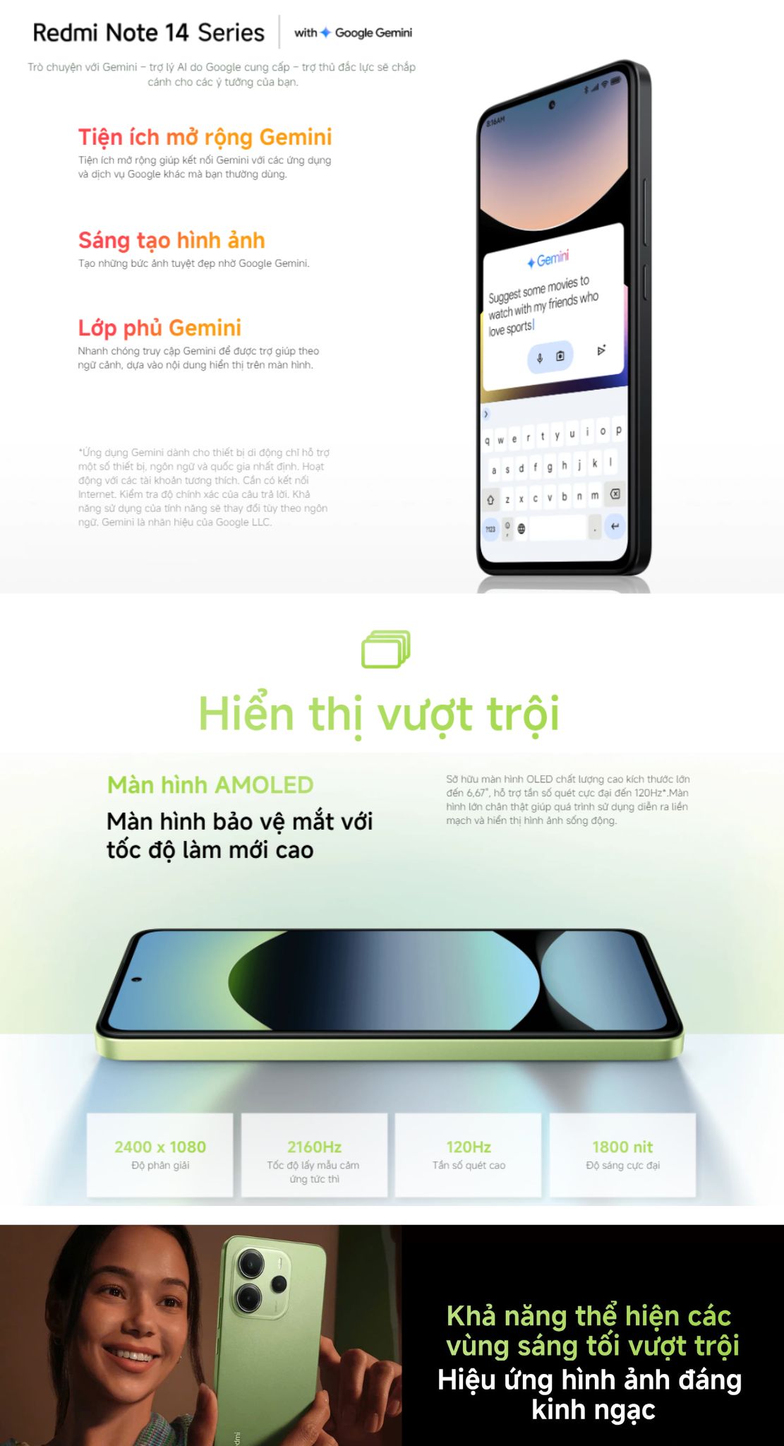 THÔNG SỐ SẢN PHẨM REDMI NOTE 14 6GB+128GB: