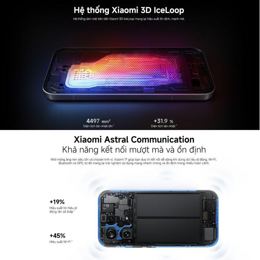 Cả Xiaomi 17 lẫn biến thể cao cấp Xiaomi 17 Ultra trang bị chip Snapdragon 8 Elite Gen 5 trên tiến trình 3nm. Con chip này giúp điện thoại xử lý mượt các tác vụ nặng như chơi game đồ họa cao và chỉnh sửa video. Nhờ kiểm soát nhiệt tốt, thiết bị duy trì hiệu năng ổn định trong thời gian dài.