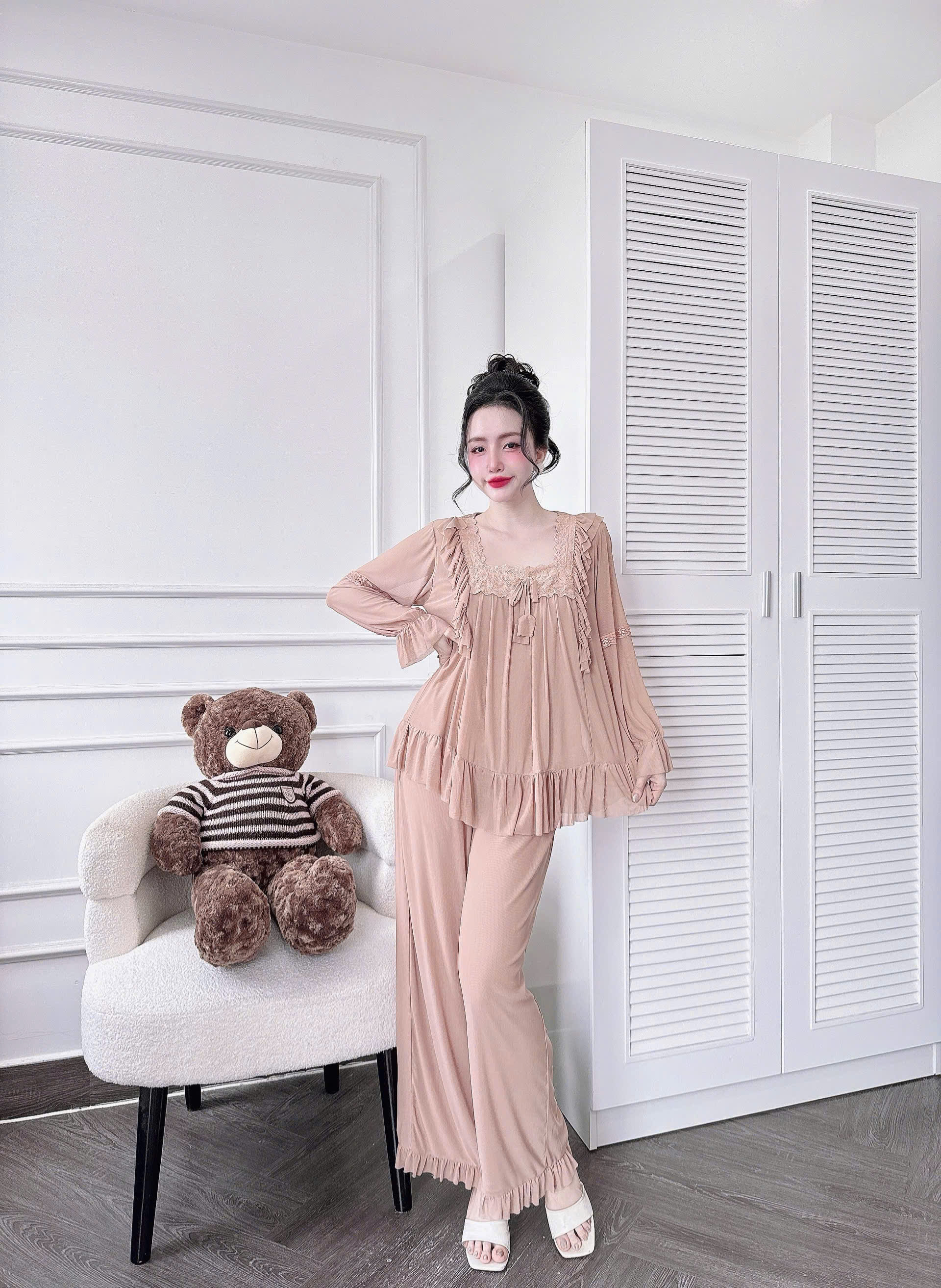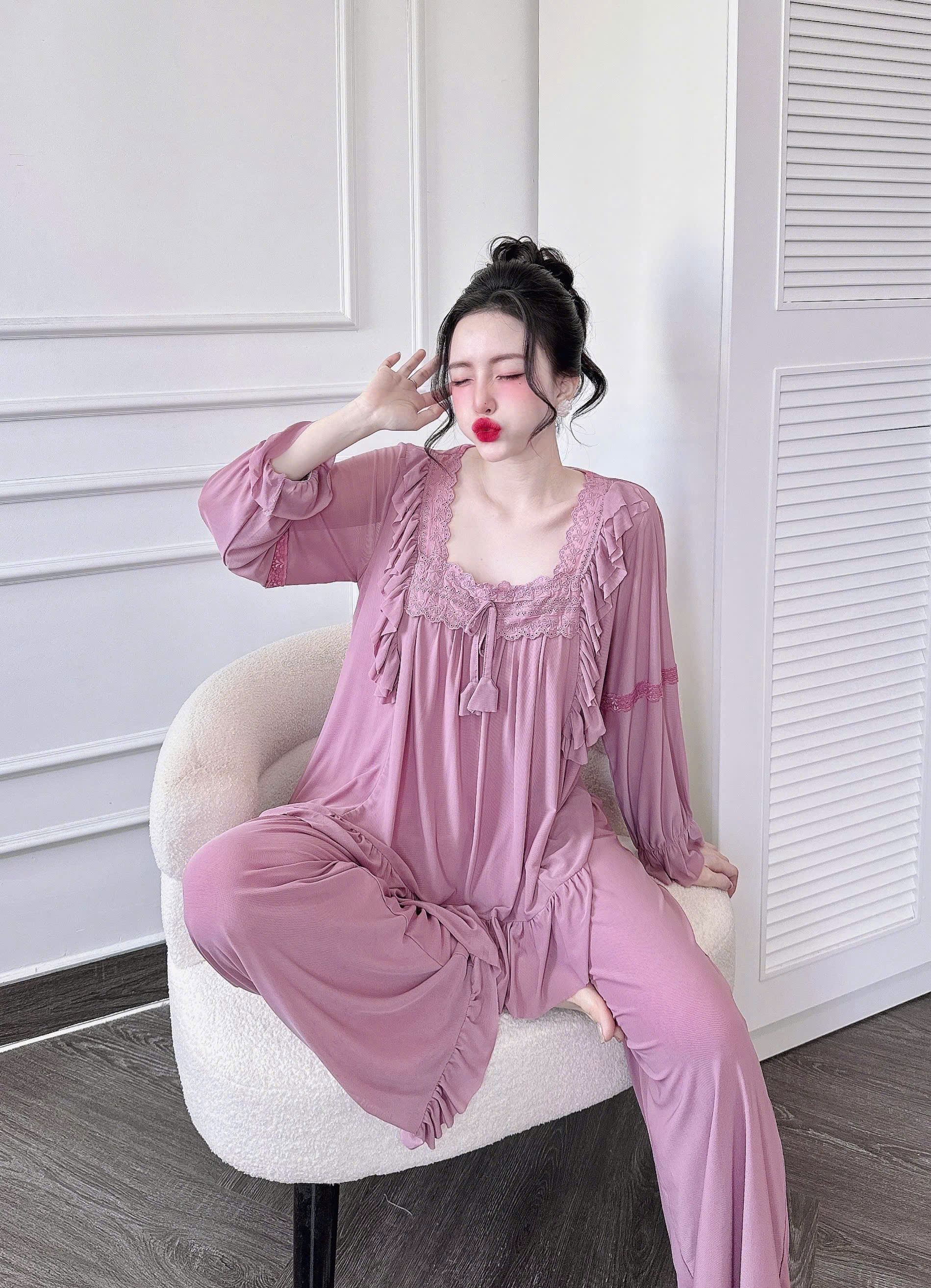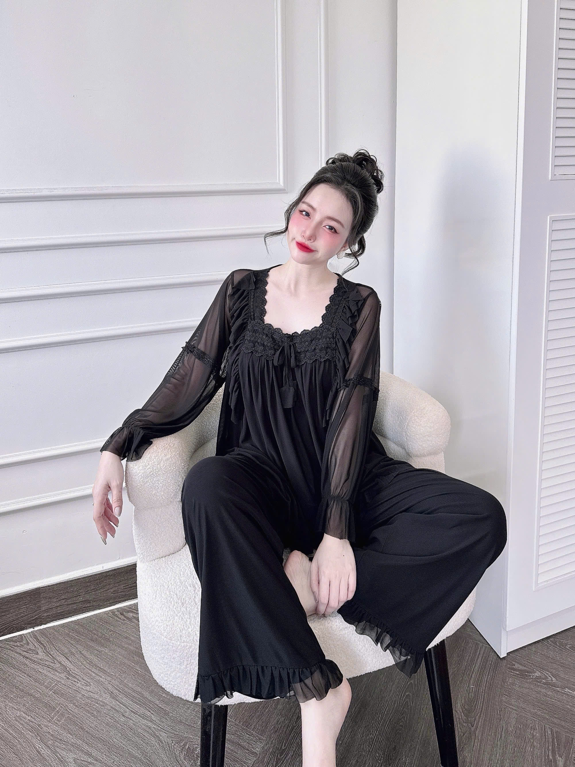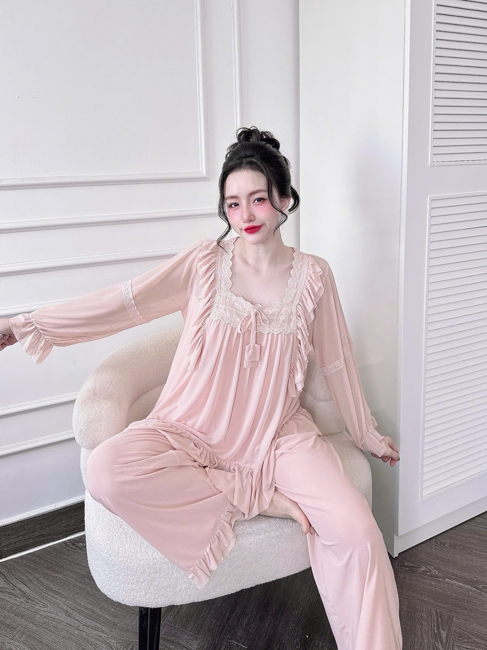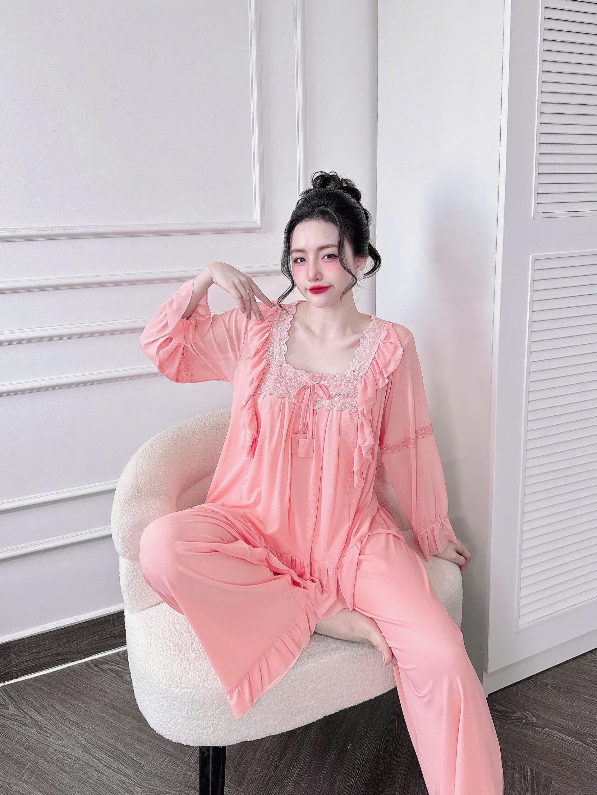 Đồ Ngủ Nữ Tiểu Thư Quần Dài, Đồ Ngủ Bigsize Lưới Thun 2 Lớp Mềm Mịn 70kg