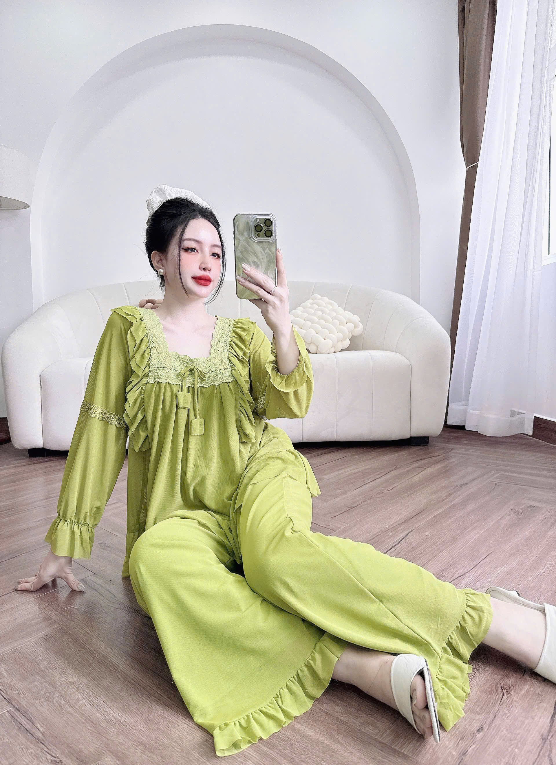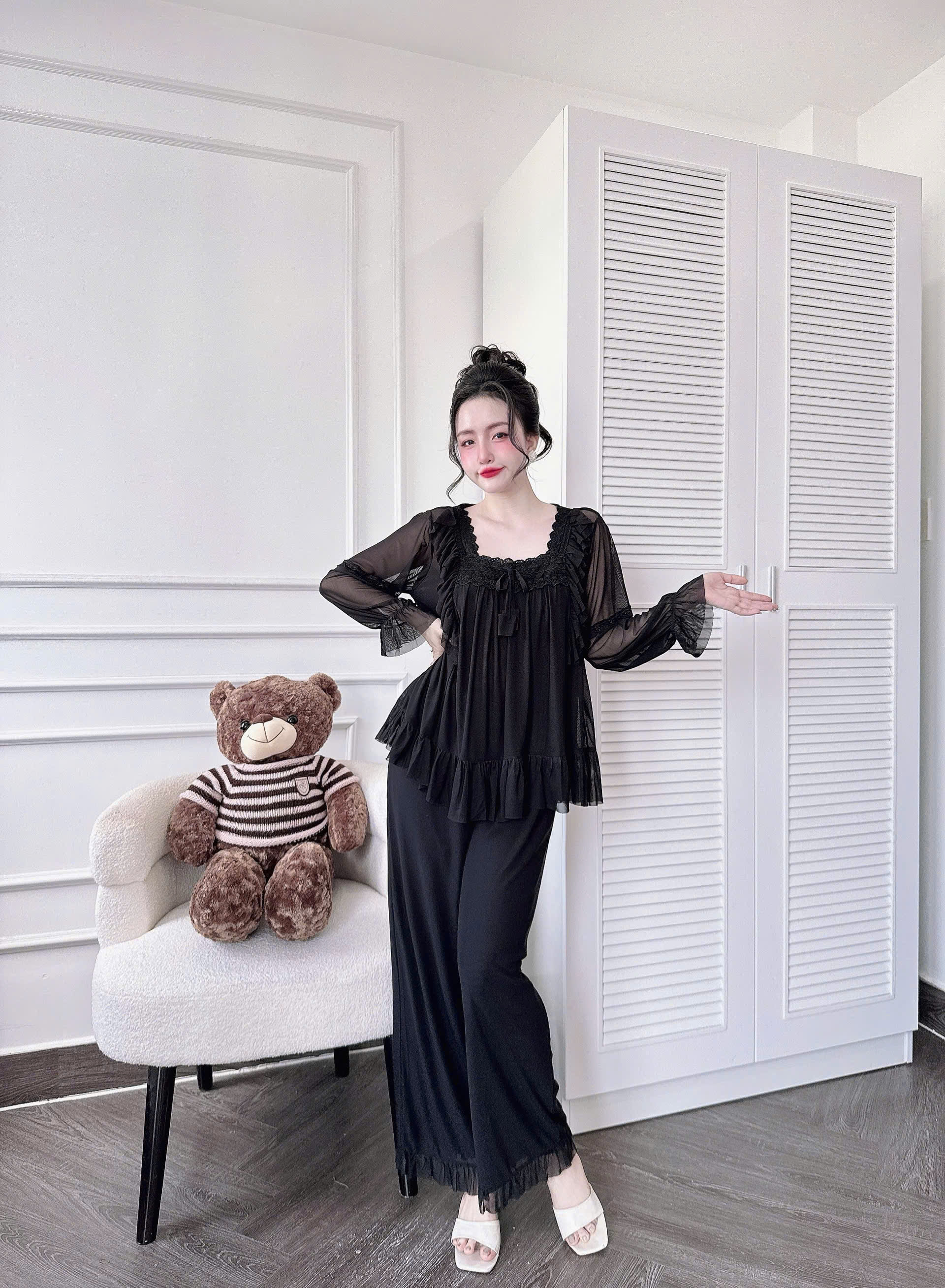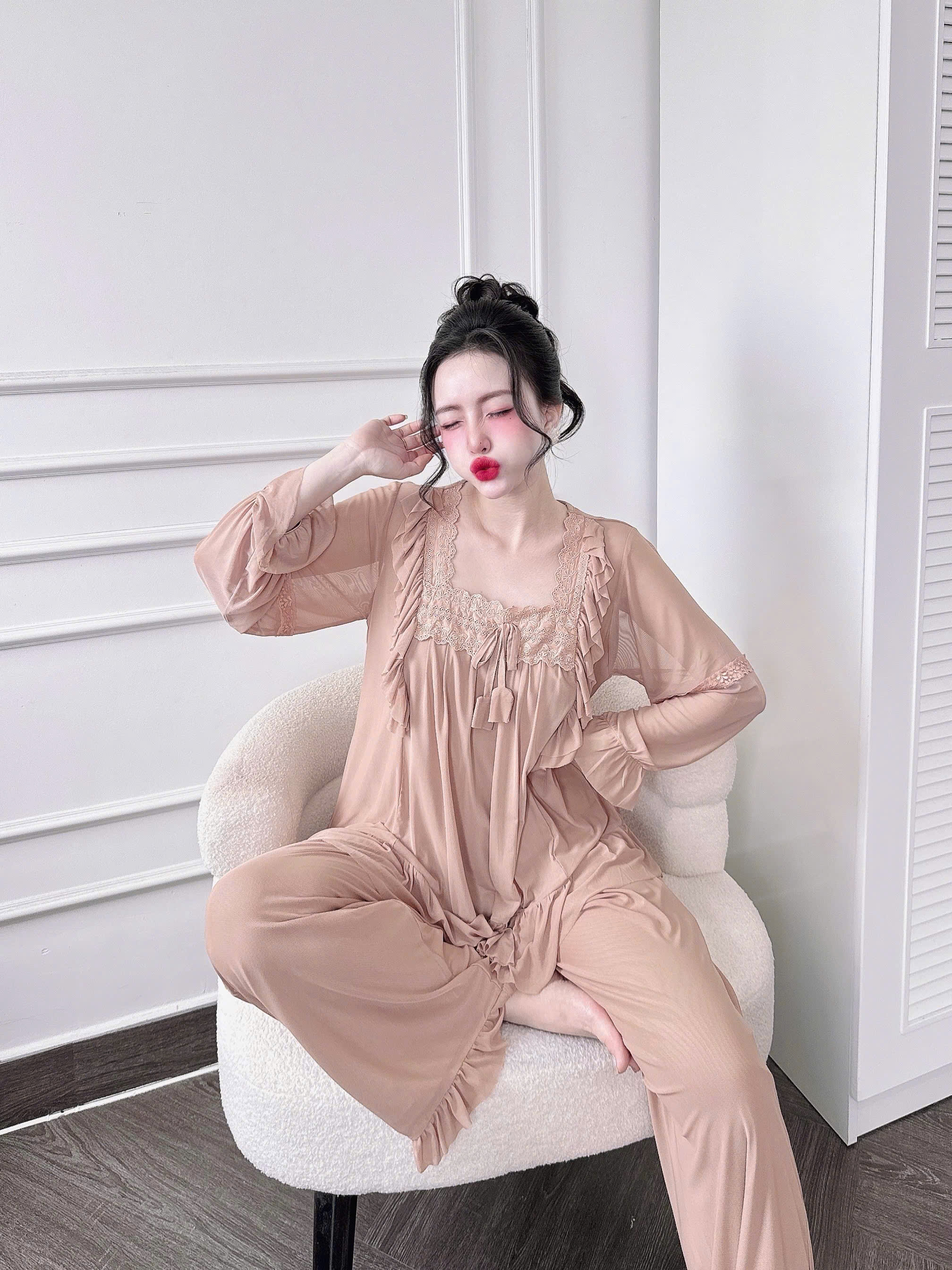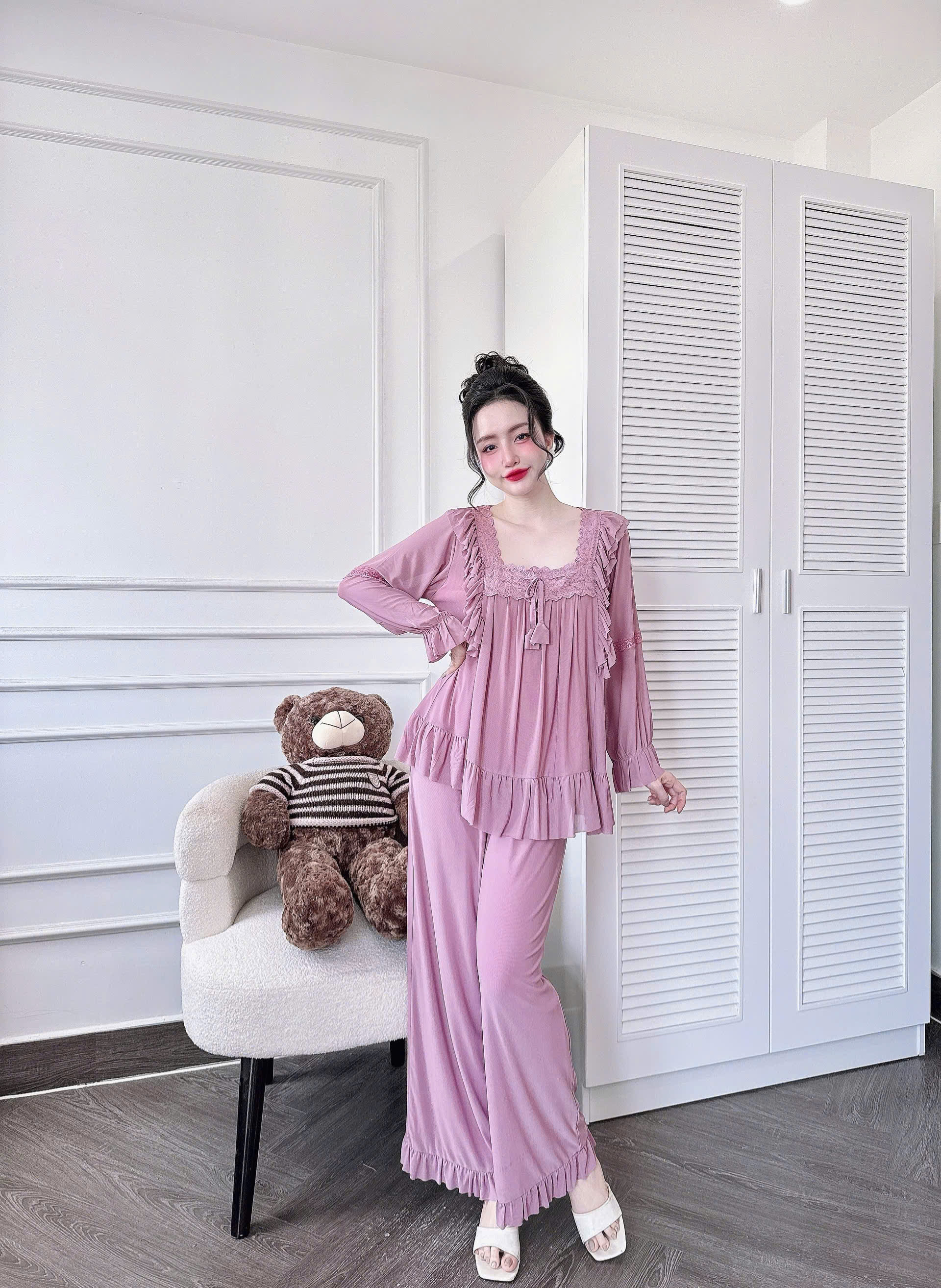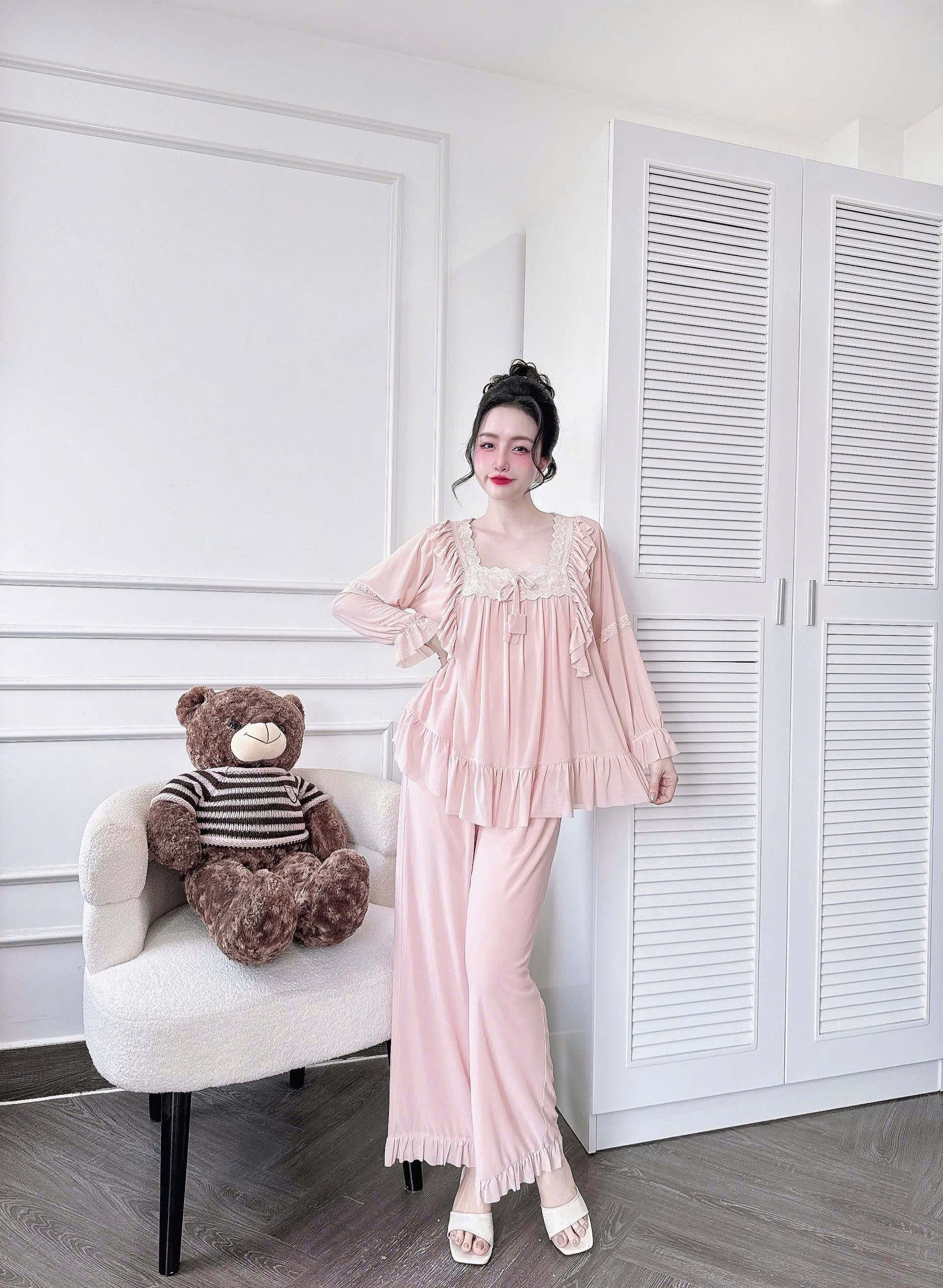 Đồ Ngủ Nữ Tiểu Thư Quần Dài, Đồ Ngủ Bigsize Lưới Thun 2 Lớp Mềm Mịn 70kg