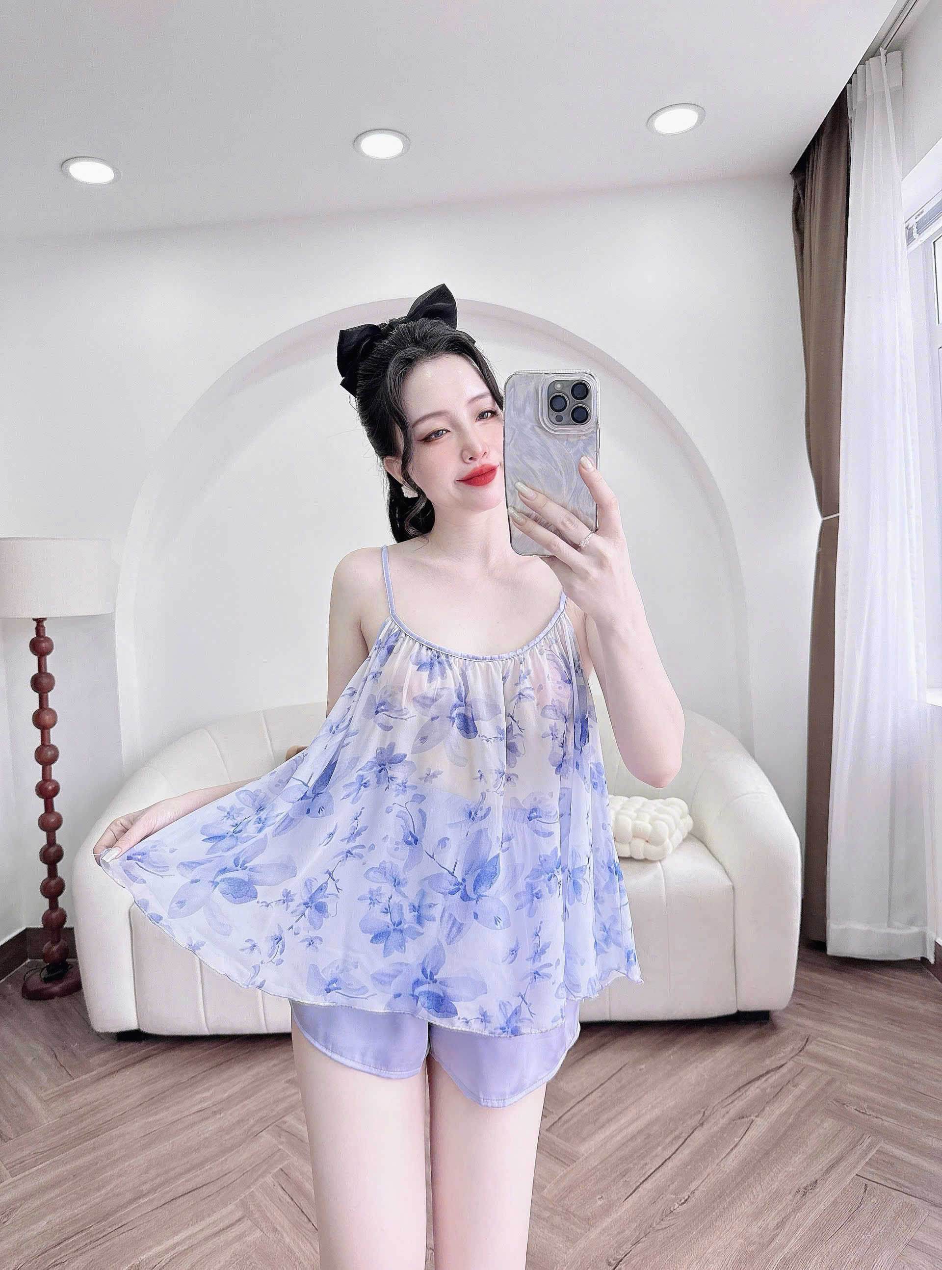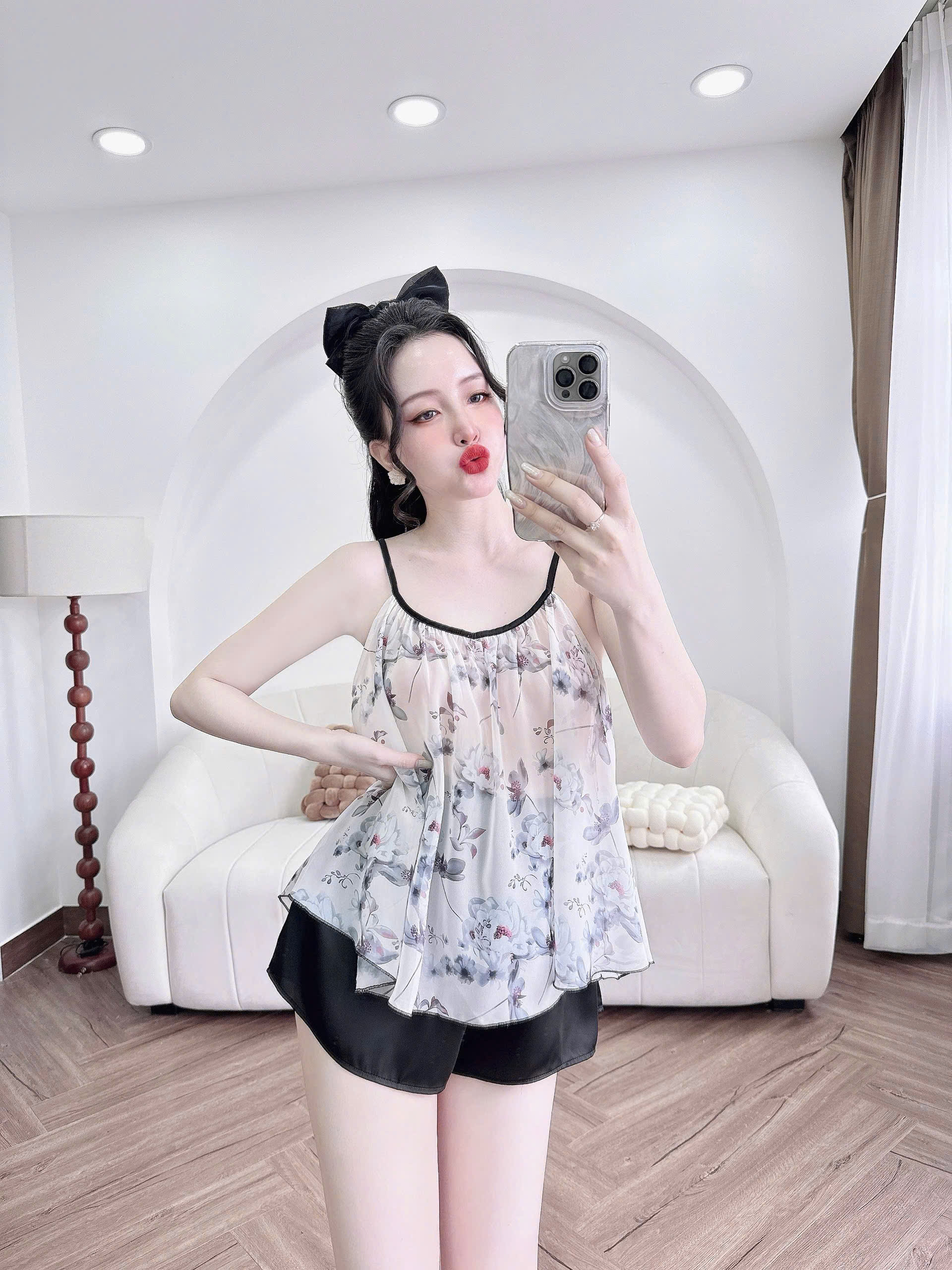 Đồ ngủ nữ Miky, Đồ ngủ sexy lụa Chiffon phối Latin cao cấp mềm mại xinh xắn <70KG